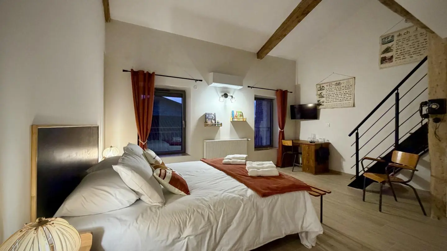 Laurence und Olivier erwarten Sie zu einer Auszeit inmitten von Natur, Weinbergen und Geschichte. Suchen Sie Ruhe und Authentizität für eine erholsame Auszeit? Dieses wunderschöne Haus wurde mit hochwertigen Materialien komplett renoviert und vereint den Charme des Alten mit seiner freigelegten Steinfassade mit modernem Komfort zu einer warmen und wohltuenden Atmosphäre. Das Haus bietet drei Schlafzimmer für zwei bis vier Personen. Jedes Zimmer ist als einzigartiger Rückzugsort gestaltet. Wünschen Sie sich ein sanftes Erwachen in einer grünen und beruhigenden Umgebung? L'Échappée Verte (Die grüne Oase) ist für zwei Personen. Sind Sie vom Charme des lokalen Terroirs und der Authentizität der Weinberge fasziniert? Terre de Vigne (Land der Rebe) entführt Sie in ein warmes Ambiente, inspiriert von der Region Bugey und ihren Weinbautraditionen. Suchen Sie einen einzigartigen Ort voller unvergesslicher Momente? Das „Classroom“ entführt Sie in eine verspielte Welt – ideal für ein zeitloses Erlebnis. Jedes Zimmer verfügt über ein eigenes Badezimmer.
