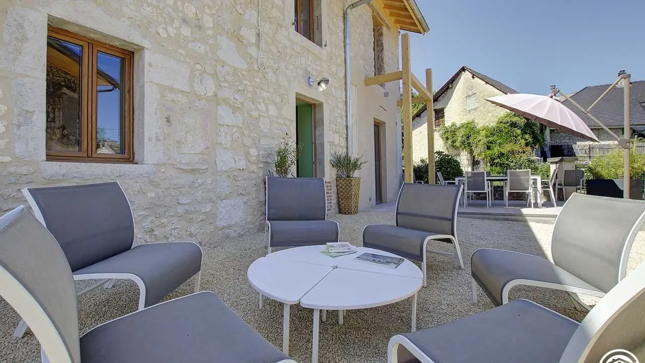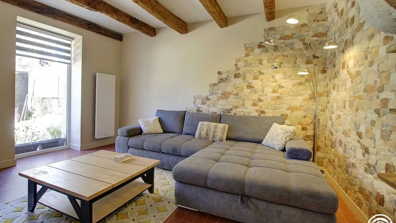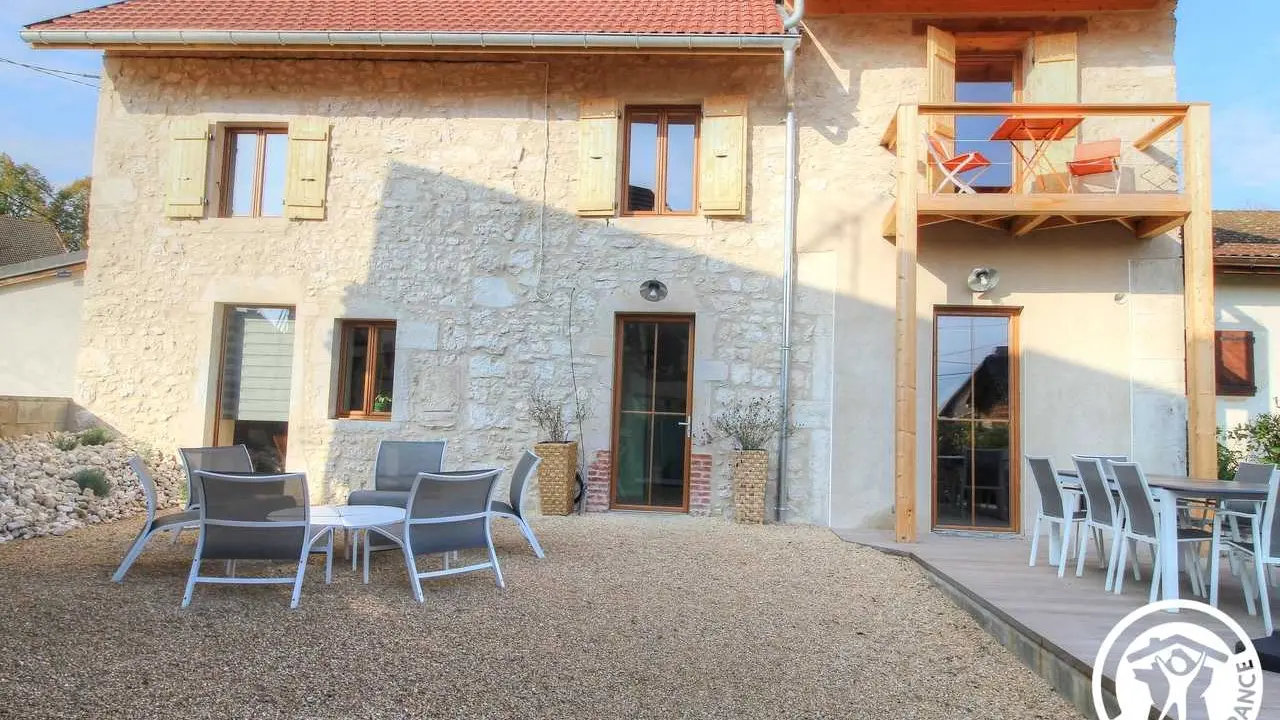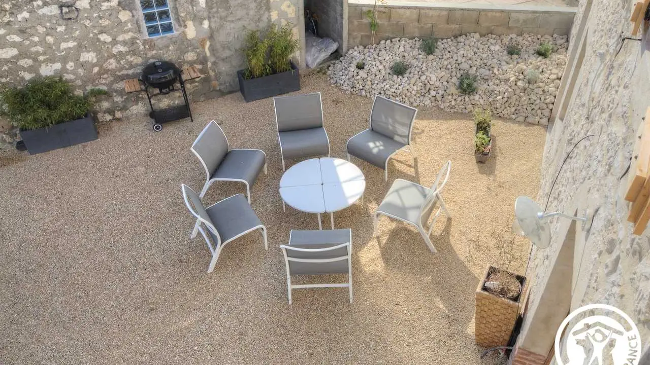 Etwa 4 km von Le Colombier entfernt befindet sich die Gîte im Zentrum des Dorfes und neben einem Gemeinschaftsparkplatz. Durch ein sicheres Tor betreten Sie den privaten Innenhof mit Terrasse, ausgestattet mit großzügigen Gartenmöbeln. Diese komplett renovierte Gîte ist mit drei Schlafzimmern und zwei Badezimmern für bis zu 6 Personen ausgelegt. Der Haupteingang öffnet sich zu einer Halle, die dient; zu Ihrer Linken - eine Entspannungslounge und zu Ihrer Rechten eine ausgestattete und funktionale Küche mit Essbereich. Sie haben direkten Zugang zur Terrasse. Eine Toilette mit Waschbecken ist im Erdgeschoss vorhanden. Zwei Treppen ermöglichen es Ihnen, die Schlafzimmer teilweise zu entdecken. Die vom Flur aus zugängliche Holztreppe führt Sie zu zwei Schlafzimmern: ein erstes Schlafzimmer mit einem 140*190-Bett und ein zweites Schlafzimmer mit zwei 90*200-Betten; ein Badezimmer. Ein Waschraum steht Ihnen zur Verfügung (mit Waschmaschine, Trockner und Waschbecken) und schließlich im Anbau, eine zweite Treppe aus Holz und Stahl, mit Blick auf das dritte und letzte Schlafzimmer. Dieses Hauptschlafzimmer mit Balkon und privatem Loungebereich umfasst 140*190 Betten, einen Büroraum und ein Badezimmer mit integriertem WC. Für das Glück von Jung und Alt, ein großer Raum (unbeheizt), ideal für Begegnungen und gemeinsame Momente der Entspannung, Zeit für eine Lektüre oder während einer Partie Tischfußball. Eine teilweise überdachte Terrasse ist ausgestattet, um einen Ruhebereich zu genießen.