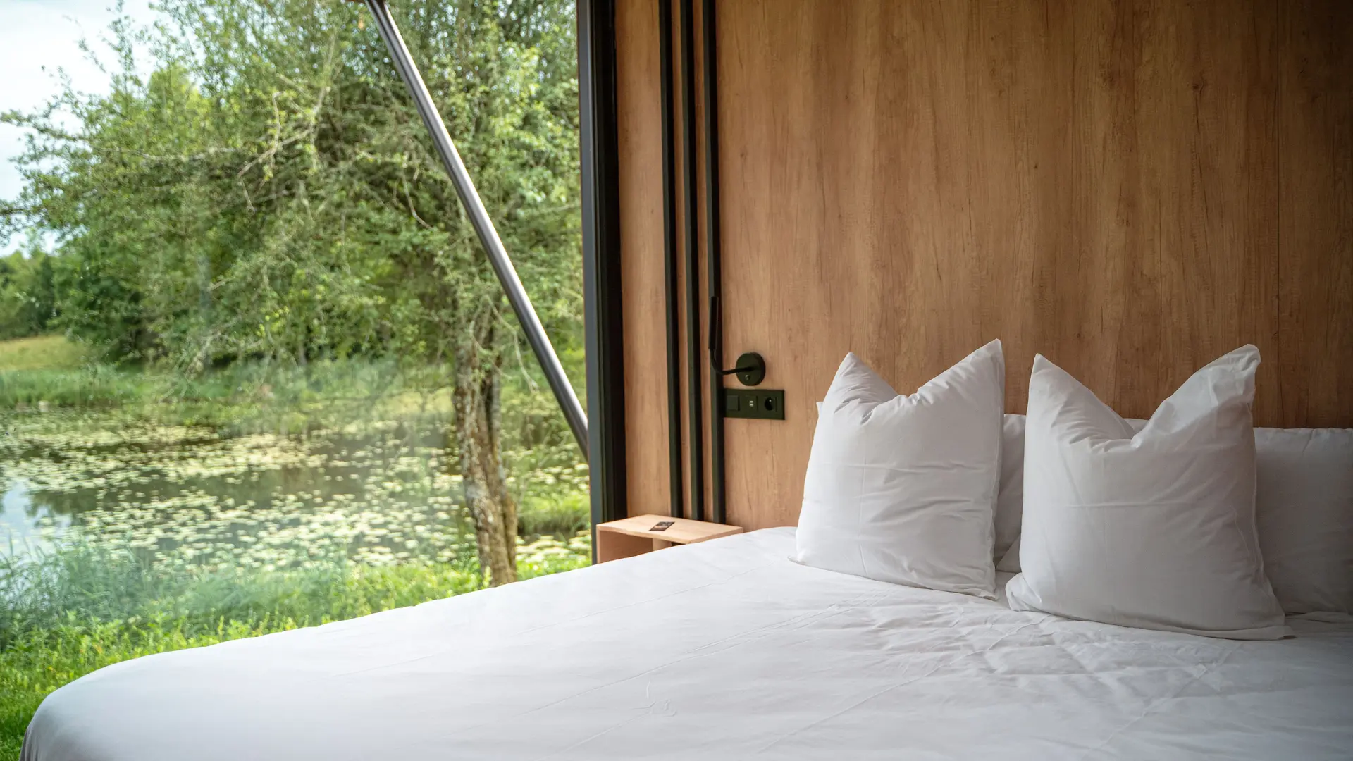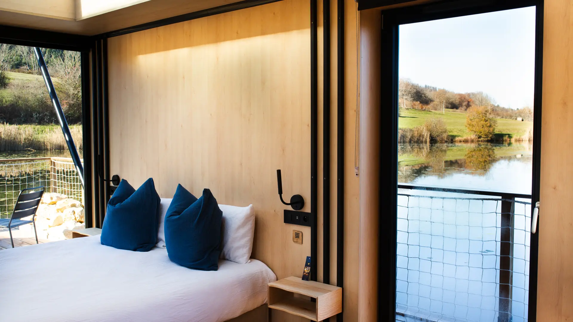 Für dieses neue Gebiet lässt sich Bleu Minuit im Departement Ain mit neuen Unterkünften auf dem Wasser nieder, deren Architektur eine Anspielung auf Freizeitboote ist. Am Ufer des Grand Etang du Genevray gelegen, empfangen diese neuen Lodges ihre Passagiere zu einer Sinnesreise zu anderen Horizonten...