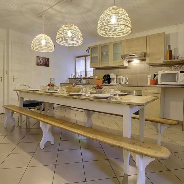 Mit seinen 5 Zimmern, die die Namen der Jahreszeiten tragen, plus seinem Zen-Zimmer, kann das Ferienhaus bis zu 12 Personen beherbergen. Diese schöne, kürzlich renovierte Scheune bietet ein Dekor im Stil eines Familienhauses, in dem die Palette von Weiß und Holz den Zimmern eine kokonartige und gemütliche Atmosphäre verleiht.