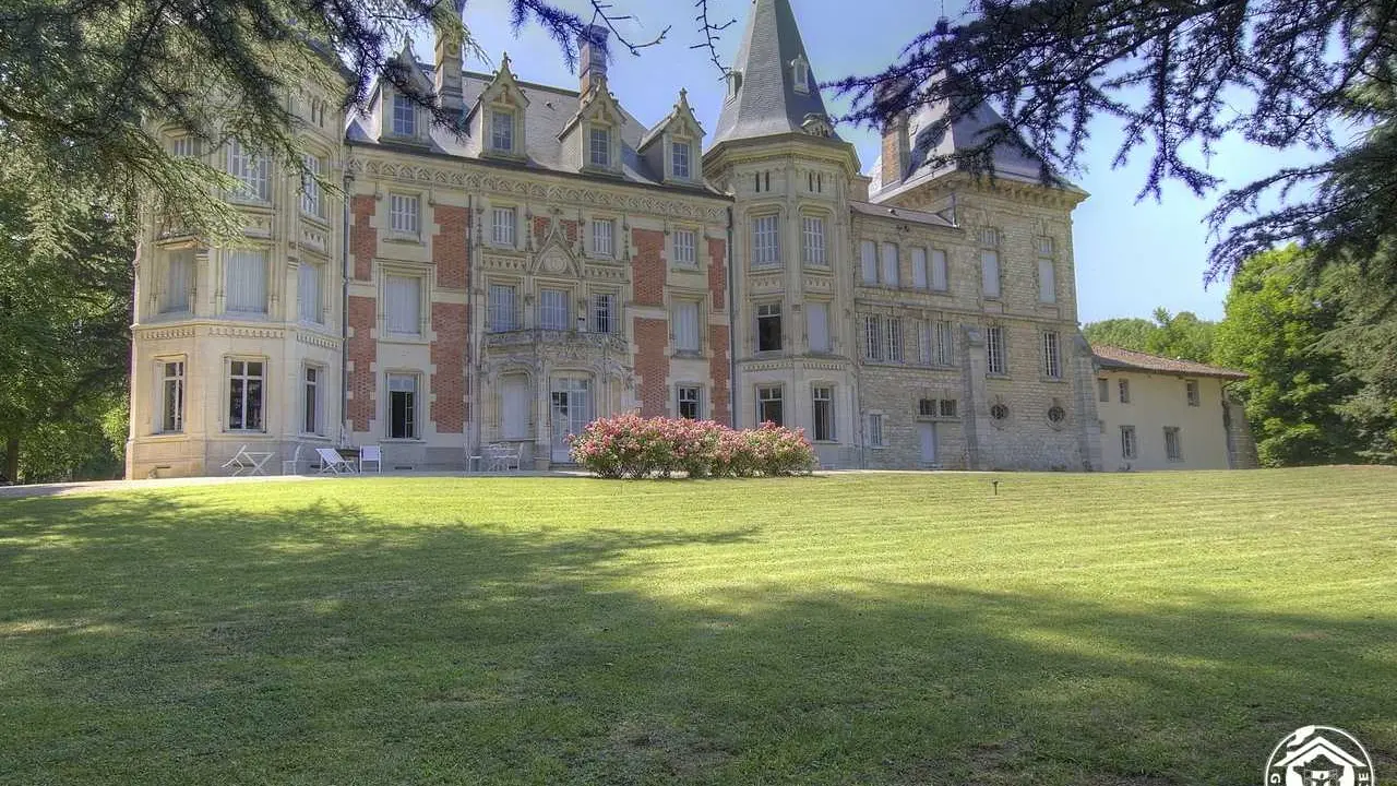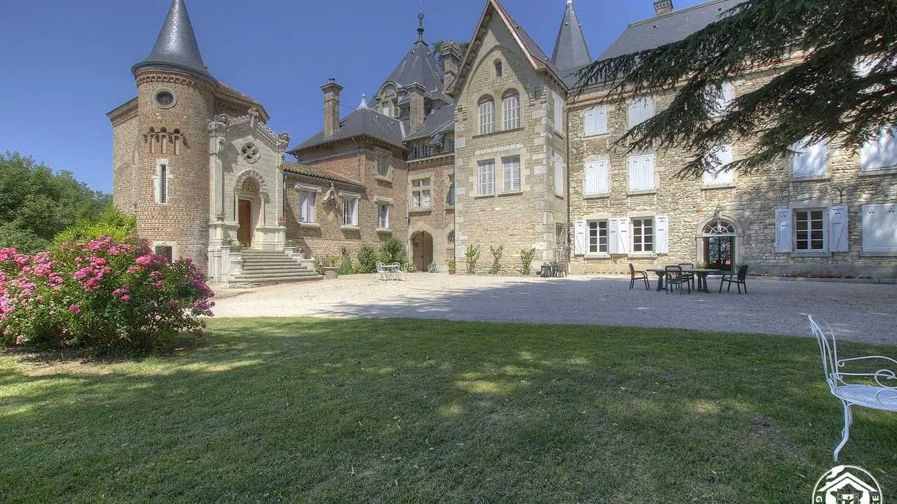 Das Château de Varambon, ein schönes, denkmalgeschütztes Haus aus dem 19. Jahrhundert, das einen atemberaubenden Blick auf die Ain-Ebene und die Monts du Bugey bietet, öffnet seine Türen für Sie...