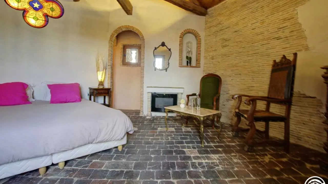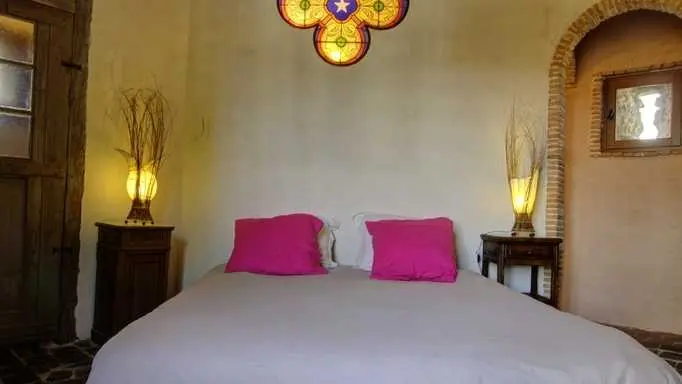- Das Michelangelo-Zimmer umfasst: ein Doppelbett, WC und separates Badezimmer, Fernseher, Wifi. Dieses große runde Mansardenzimmer befindet sich auf der Spitze des Turms mit Schießscharten und dem Buntglasfenster der ehemaligen Kapelle.