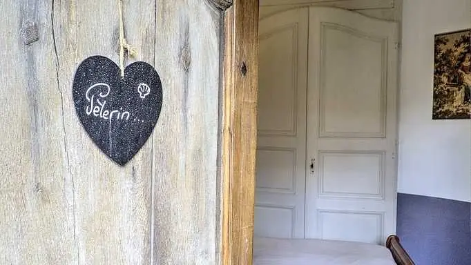 - Chambre du Pèlerin (Pilgerzimmer) im Erdgeschoss des Mandot-Turms. Es besteht aus einem Doppelbett, Fernseher, Wifi, einem Badezimmer mit Dusche und einem WC.