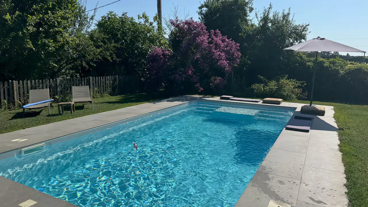Für Babys ist alles vorhanden: Reisebett, Hochstuhl, Babybadewanne. Rund um den Pool stehen Liegestühle, Gartenmöbel, Poolmatratzen sowie Schwimmreifen und Schwimmflügel für Kinder zur Verfügung.