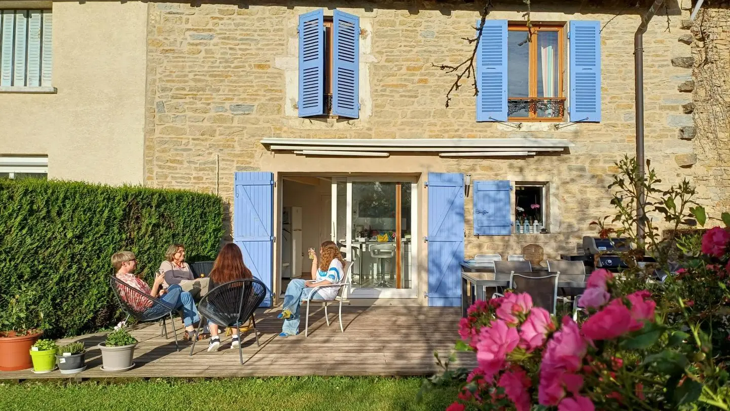 Sie werden zuerst den Hof mit seiner Steinmauer und seiner grünen Ecke entdecken, seine blumengeschmückten Zinkwannen entlang des Holzzauns, Sie werden den Schatten des Apfelbaums genießen und je nach Jahreszeit seine Früchte direkt vom Baum pflücken. Am Ende des Tages holen Sie die Tischtennisplatte und die Boule-Kugeln hervor und spielen fröhliche Partien, die bis zur Abenddämmerung als Aperitif fortgesetzt werden.