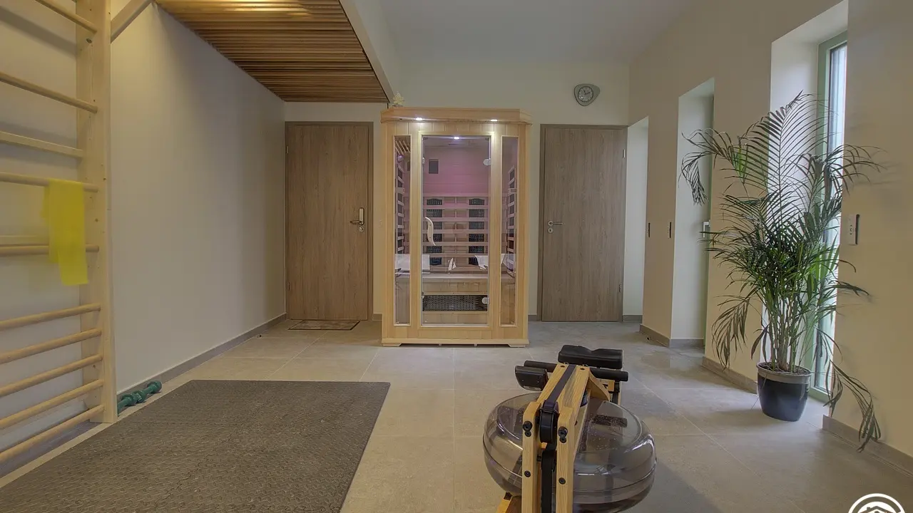 Gemeinsames überdachtes Schwimmbad für die Ferienwohnungen und Gästezimmer.