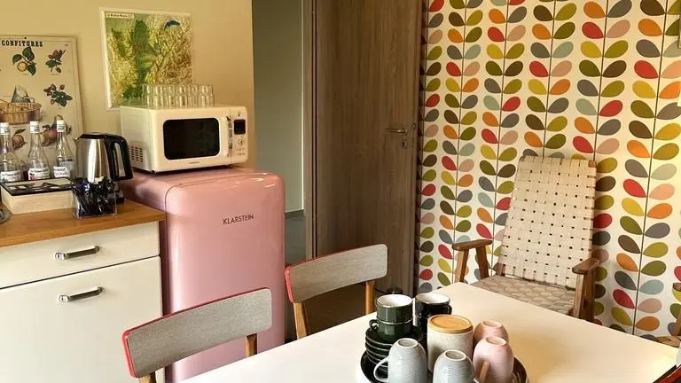 Privater Aufenthaltsraum mit freiem Zugang (Kräutertee).
