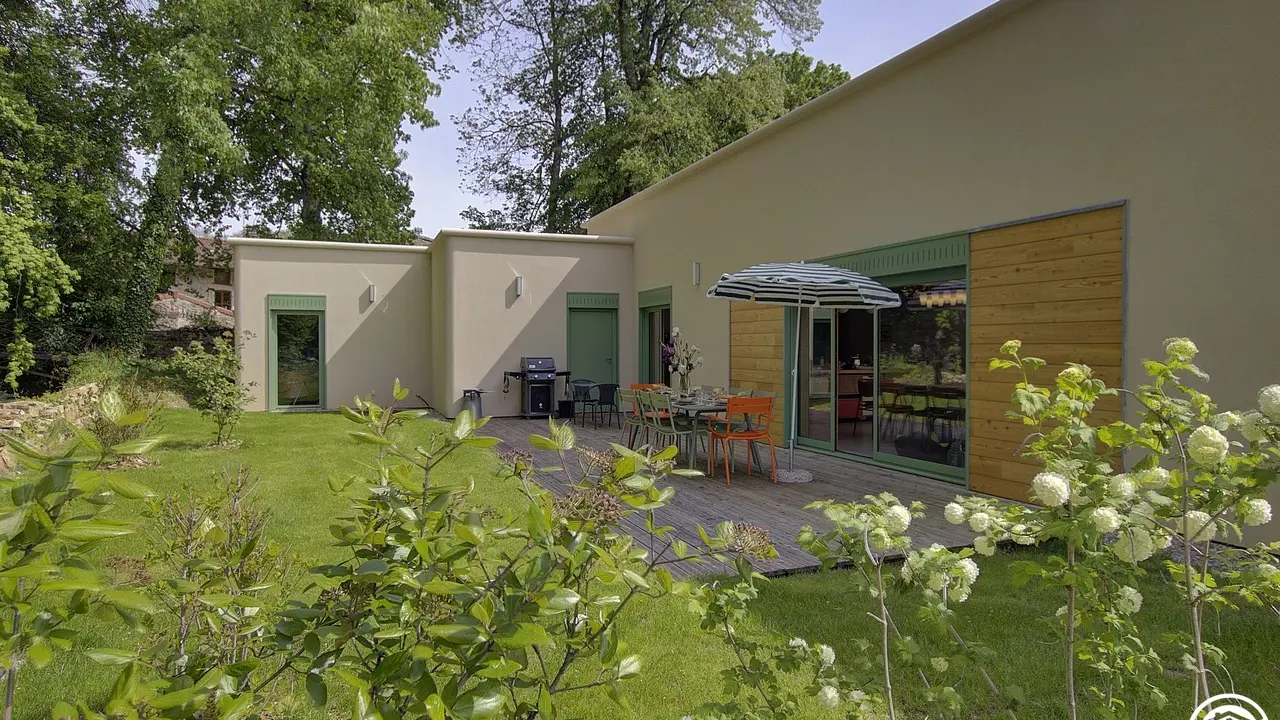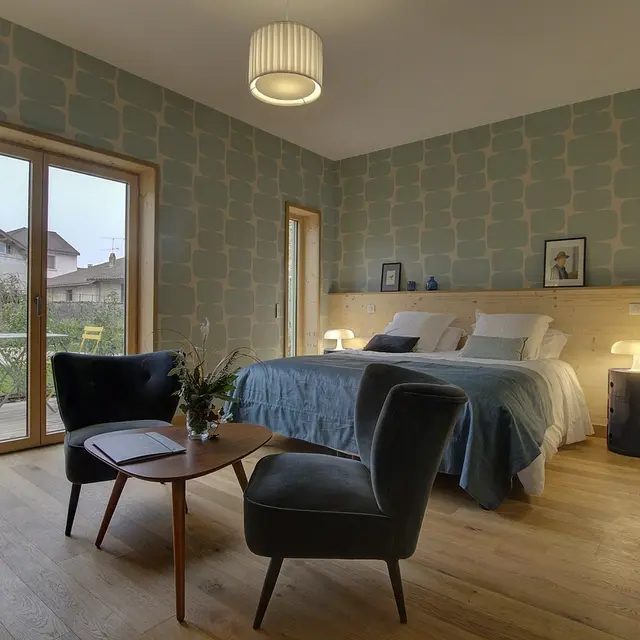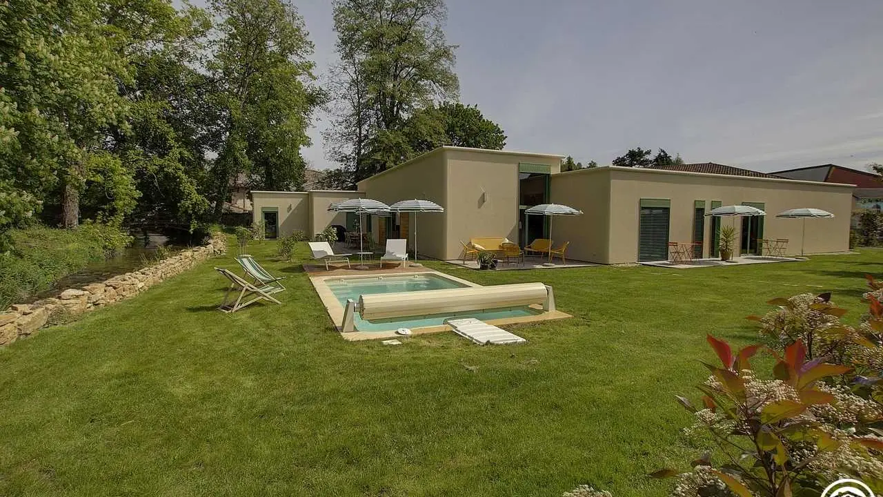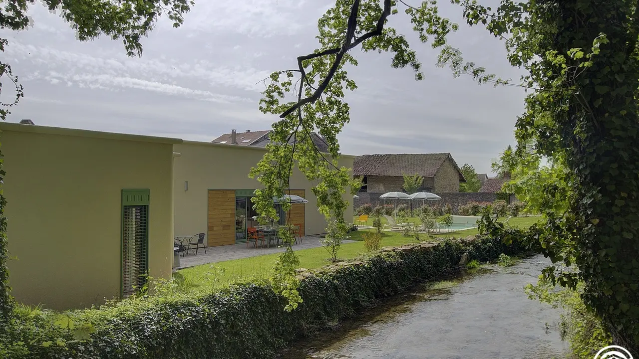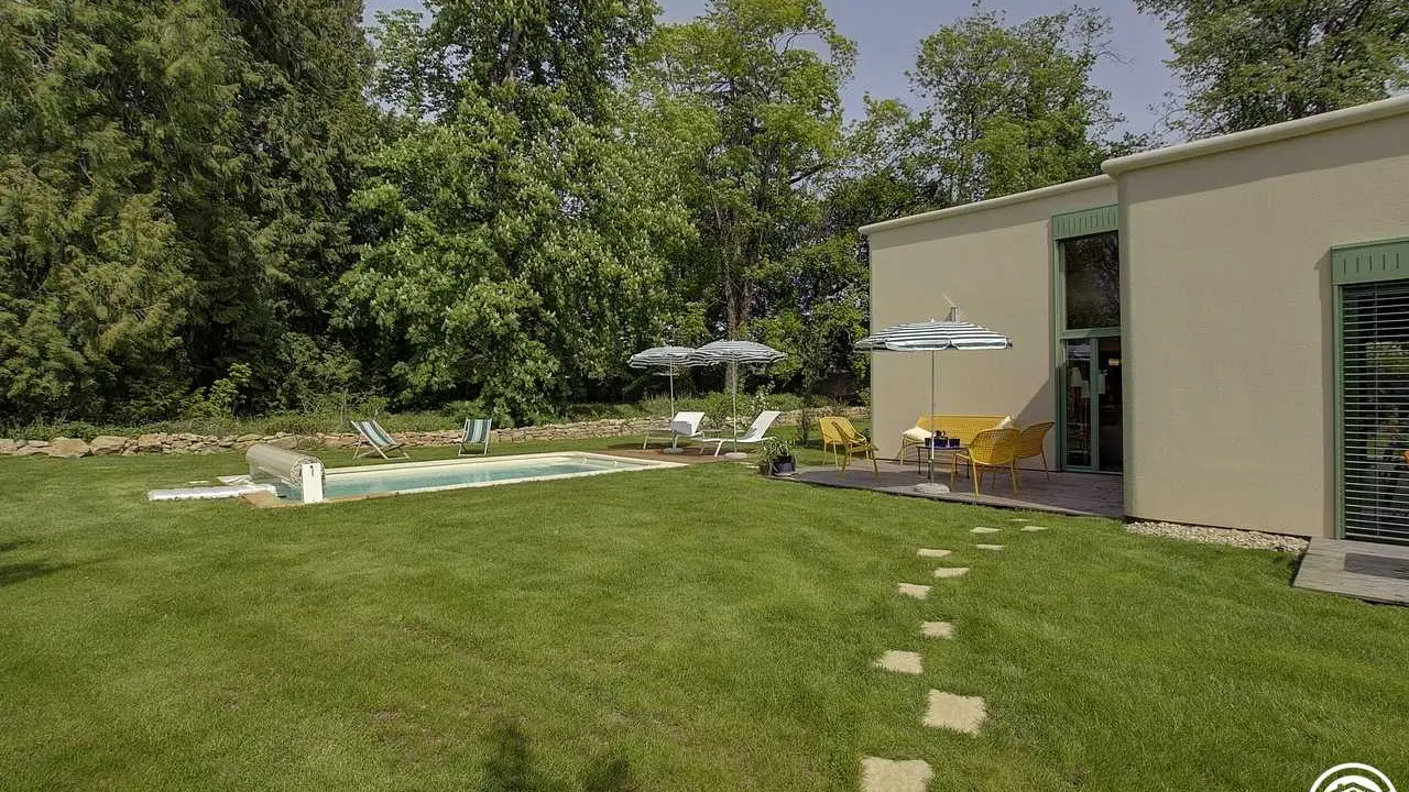 Außergewöhnliche, charmante Unterkunft mit Innenschwimmhalle und Außenpool in ruhiger Lage im Herzen eines Dorfes im Bugey-Gebiet. Großer Park mit Bäumen.