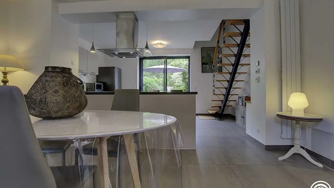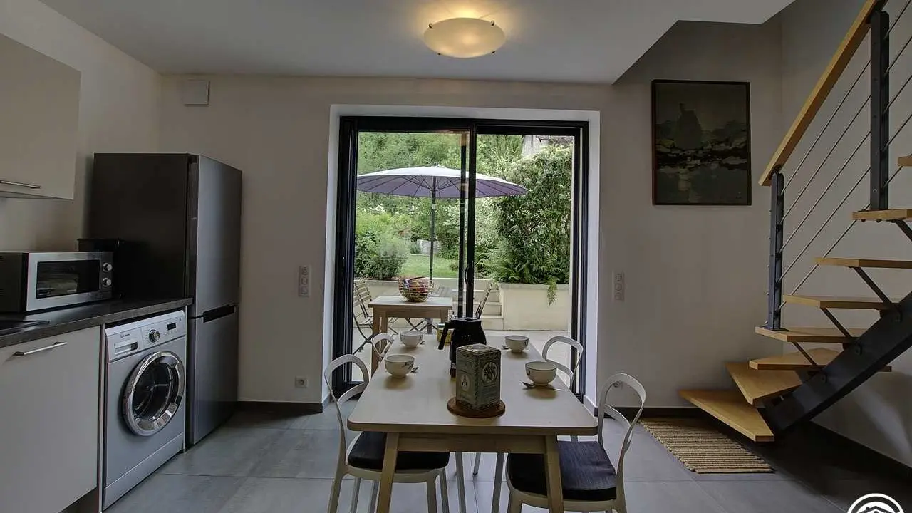 Um zum Clos des Hirondelles zu gelangen, parken Sie auf dem Ihnen gewidmeten Parkplatz, und nachdem Sie die japanische Treppe berührt haben, öffnet sich eine schöne Holztür zu einem großen Wohnzimmer, das aus einer ausgestatteten Küche besteht, die zum Wohnzimmer und seinem Loungebereich (Sofa) offen ist Bett für zwei Personen); ein Badezimmer mit direktem Zugang zu einer privaten Terrasse und einem gemeinsamen Garten mit den Eigentümern, den sie jedoch während Ihres Aufenthalts vollständig zu Ihrer Verfügung stellen. Ein separates WC.
