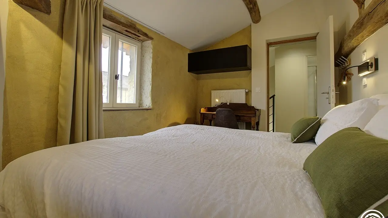 Die Brotofen-Gîte (6 Personen) ist ein integraler Bestandteil eines alten Bauernhauses, das komplett renoviert wurde. Es hat einen unabhängigen Eingang, nicht zu übersehen. Entdecken Sie den atemberaubenden Blick auf den Teich von der Balkonterrasse des Wohnzimmers für eine natürliche Flucht. Das Wohnzimmer, ein der Entspannung gewidmeter Raum, offenbart den Charme des Alten mit seinem dekorativen Kamin, seinen alten Bodenfliesen, seinem Stein... Die beiden hellen Schlafzimmer sind mit Balken geschmückt. Bei den sanitären Einrichtungen können Sie zwischen Badewanne oder Dusche wählen. Eine "Familienheim"-Dekoration in einer entspannenden Umgebung. Nutzen Sie die Vorteile der Natur, mit dem angrenzenden und geschützten Innenhof oder dem privaten Garten. Entfliehen Sie durch die bewaldeten Pfade des Anwesens. Müde ? Nehmen Sie das Auto und entdecken Sie die Region Dombes mit 1000 Teichen, eine Region, die reich an Fauna und Flora ist. Für Urlauber viele Aktivitäten in der Nähe: Entdecken Sie die Hauptstadt Ain mit ihrem königlichen Kloster Brou, den Vogelpark in Villars des Dombes. Für Feinschmecker, die den Fisch nicht necken, kommen Sie und genießen Sie Karpfen, Frösche. Bresse-Huhn bleibt die wesentliche Spezialität von Ain. Sind Sie professionell? da hast du alles. Reisen Sie leicht mit All-Inclusive: Betten sind bei Ankunft bezogen, Handtücher und Heizung inklusive. Erdgeschoss: Eingangshalle, halboffene Küche zum Wohnzimmer und Ruhebereich,
