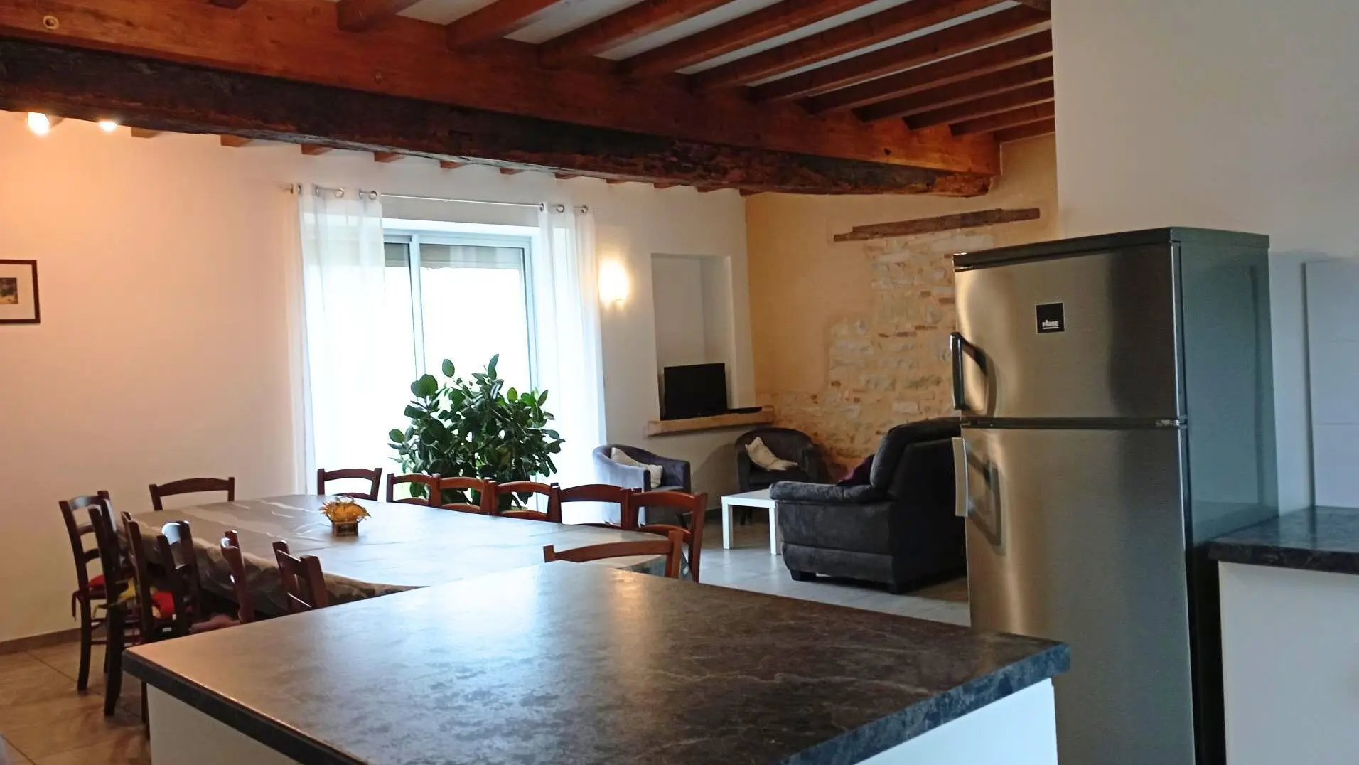 Ideal für Ihre Familien- oder Freundestreffen. In einem U-förmigen Bauernhaus, das aus einem Wohnhaus, landwirtschaftlichen Nebengebäuden und zwei angrenzenden komfortablen Unterkünften (6 und 8 Personen) besteht. Gîte Tournesol: 8 Personen, 100m², Zugang zu einem Flur, WC, ein großes helles und geräumiges Zimmer, darunter ein Wohnzimmer mit Lounge und Einbauküche. Im Obergeschoss drei funktionale und personalisierte Schlafzimmer: 1 Doppelbett, 1 Doppelbett und 1 Einzelbett, 3 Einzelbetten. Zwei Duschbäder, eines mit WC. Elektroheizung. Gite Coquelicot: 6 Personen, 64 m², Zugang zu einem Flur, WC, ein helles Zimmer, einschließlich einer zum Wohnzimmer offenen Küche mit Schlafcouch (2 Personen). Im Obergeschoss zwei funktionale und personalisierte Schlafzimmer: 1 Doppelbett, 2 Einzelbetten. Ein Badezimmer mit WC. Elektroheizung. Vor der Gîte, in der Verlängerung des Wohnzimmers, Platz im Freien für Gartenmöbel und Grill. Auf der Rückseite eine Grünfläche und ein schöner freier Blick auf den Mâconnais, mit Blick auf den Brotofen. Der große (unbeheizte) Raum, der in einem Nebengebäude eingerichtet ist, wird Kinder begeistern (Tischtennis usw.). Unterkunft in sehr guter Lage, um die Schätze der Region, ihre Architektur, ihre Gastronomie, die Weinberge und ihre Keller zu entdecken. In der Nähe von Pont de Vaux, seinem Wassersportzentrum und seiner Eisbahn.