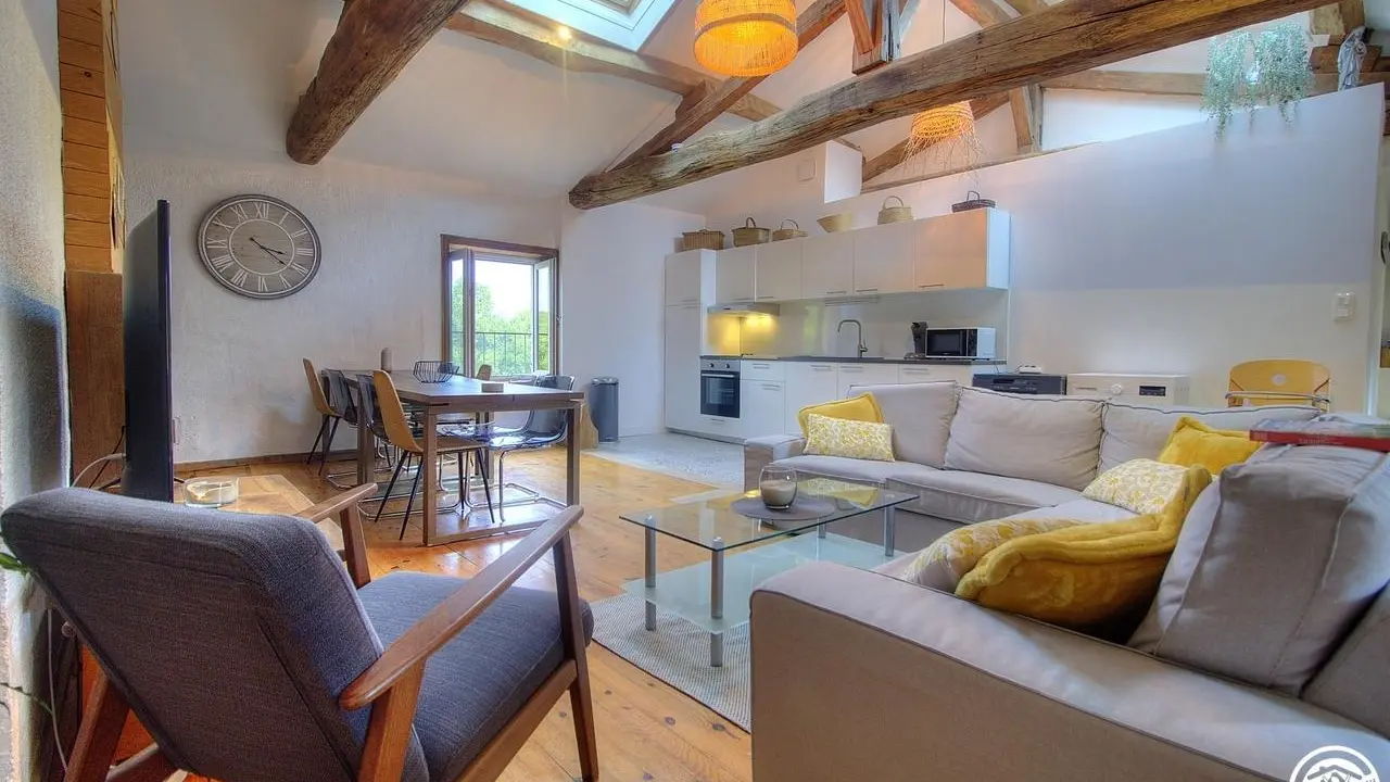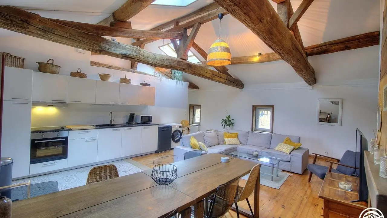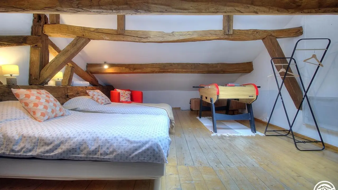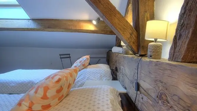 Dieses Cottage im 2. Stock bietet Platz für bis zu 8 Personen. Ein warmes Ambiente voller Authentizität: Sichtbalken, antike Parkettböden, historische Terrakottafliesen und ungewöhnliche Volumen verleihen diesem außergewöhnlichen Ferienhaus seinen Charakter. Mit seinen vier Schlafzimmern auf verschiedenen Ebenen birgt es einige wunderbare Überraschungen, darunter ein Schlafzimmer im Dachgeschoss, ein wahrer Kokon voller Persönlichkeit, in dem Sie sich wie in einem gemütlichen Nest fühlen, auch wenn Sie sich manchmal unter den niedrigen Balken ducken müssen.