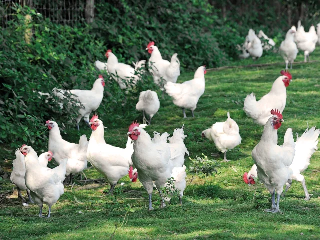 Das Bresse-Geflügel zeichnet sich durch eine strenge Aufzuchttradition aus, die seine Qualität garantiert. Es wird auf handwerkliche Weise aufgezogen. Es wächst in aller Ruhe während einer achtmonatigen Aufzucht auf der Weide heran, bevor es dank einer gesunden und kontrollierten Ernährung vier Wochen lang gemästet wird.