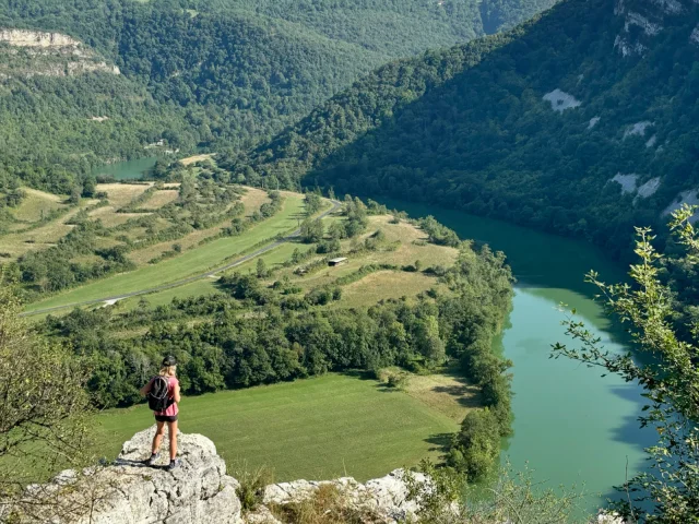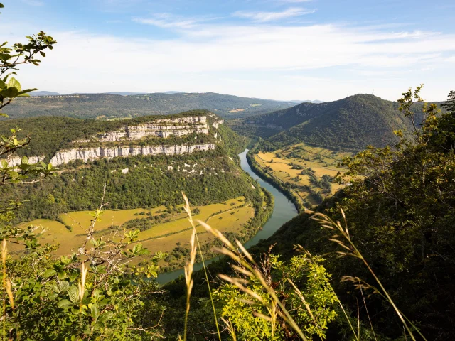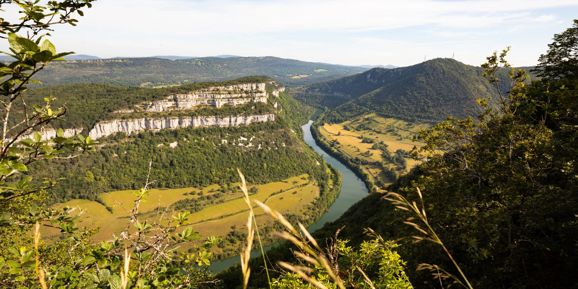 Elle donne son nom au département de l’Ain, et ce n’est pas pour rien. La rivière d’Ain a sculpté le paysage, creusant patiemment un passage pittoresque dans les reliefs calcaires. D’aval en amont, les falaises s’écartent, les vallées s’ouvrent, les villages surgissent. Certains la suivent en canoë, d’autres préfèrent la voir d’en haut, depuis un sentier accroché à la pente. Mais tous finissent par prendre le temps de s’arrêter, face au cours d’eau, émerveillés par des paysages façonnés depuis des millénaires.