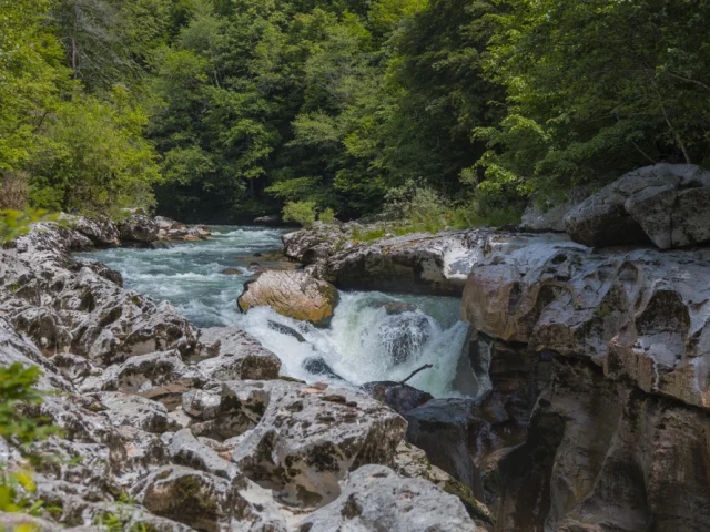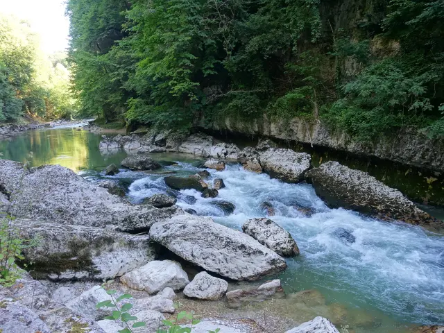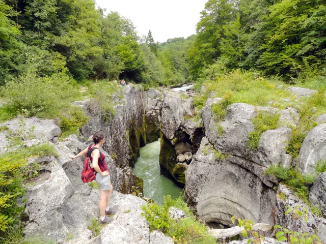 La Valserine coule au pied de la Haute Chaîne du Jura et s’écoule en grande partie dans des gorges, à travers une succession de cascades et de marmites géantes. C’est le premier cours d’eau labellisé « Rivières sauvages de France », notamment pour la qualité de son eau et son environnement naturel préservé. Inévitablement recherchée pour la pêche, la Valserine regorge de truites Fario.
