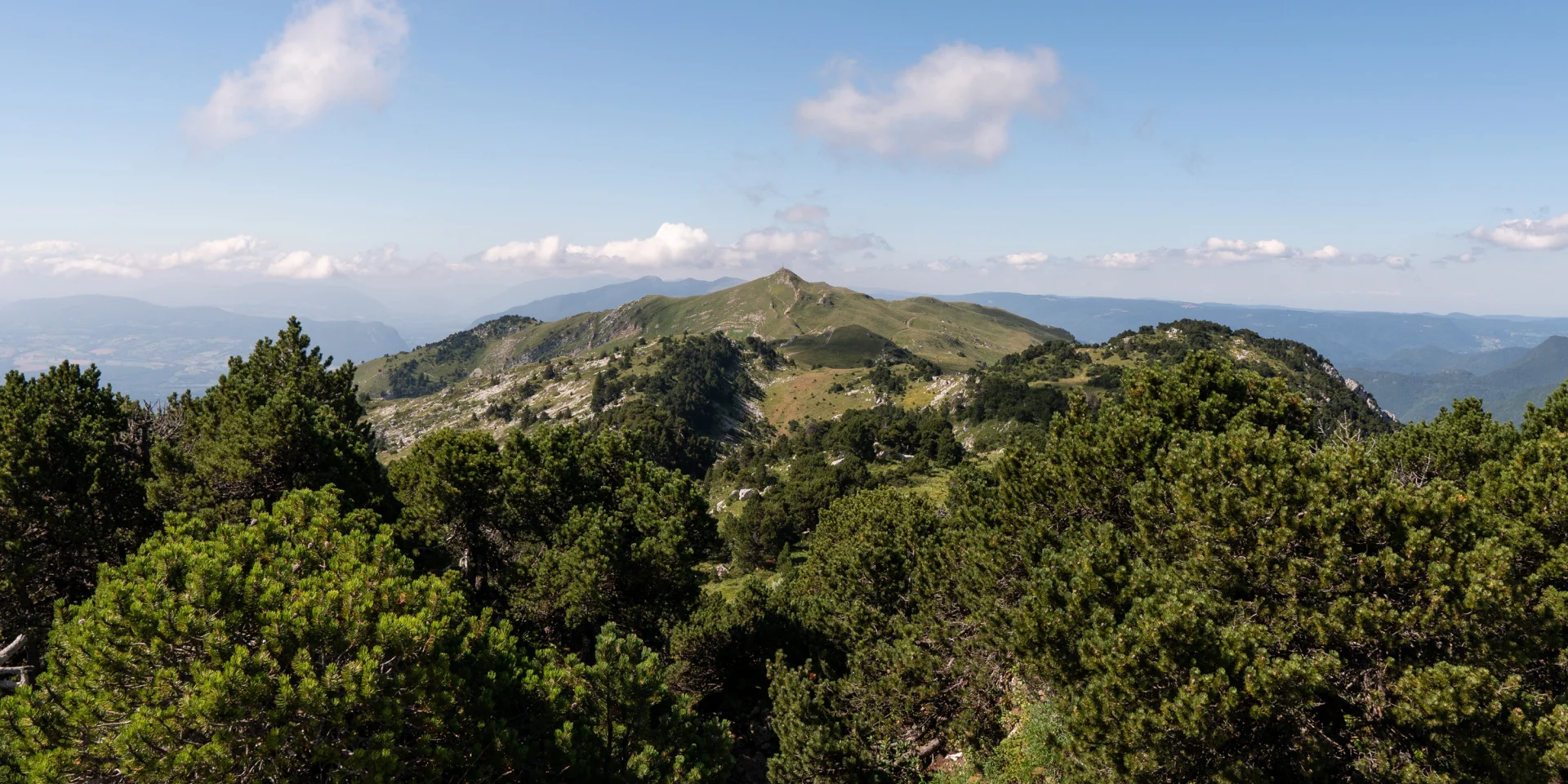 Sur une distance de 58 km, du Montrond au Grand Crêt d’Eau, l’Ain offre la collection des plus hauts sommets du massif jurassien, dominant le Pays de Gex et la vallée de la Valserine. Cette ligne de crêtes s’élève face aux Alpes, offrant un belvédère grandiose sur le lac Léman et le mont Blanc.
