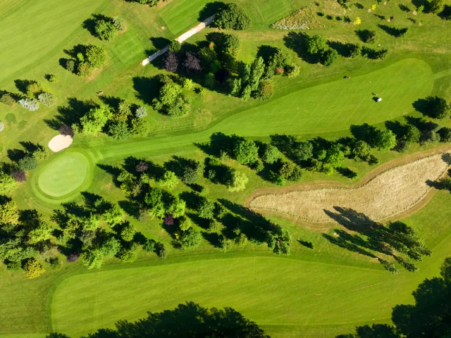 Created in 2001 on the edge of Brétigny, in the commune of Prévessins-Moëns, this golf course is open to green card holders (index 54 min). In 2018, the course was extended to include a driving range, necessitating the redesign of the course, part of which is now laid out in the woods and ends opposite the clubhouse.