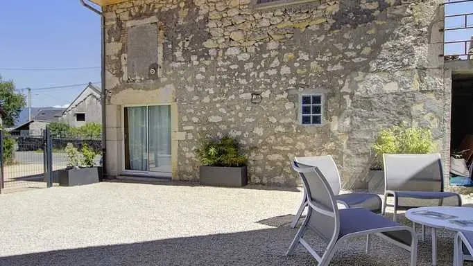 About 4 km from Le Colombier, the gîte is located in the center of the village and next to a communal car park. Through a secure gate, you enter the private courtyard with terrace, equipped with spacious garden furniture. This completely renovated gîte is designed to accommodate up to 6 people with its three bedrooms and two bathrooms. The main entrance opens onto a hall which serves; on your left - a relaxation lounge, and on your right, an equipped and functional kitchen with dining area. You can directly access the terrace. A toilet with washbasin is available on the ground floor. Two staircases will allow you to partially discover the bedrooms. The wooden staircase, accessible from the hall, leads you to two bedrooms: a first bedroom with a 140*190 bed, and a second bedroom, with two 90*200 beds; a bathroom. A laundry room at your disposal (with washing machine, dryer, and sink) and finally in the extension, a second staircase in wood and steel, overlooks the third and last bedroom. This master bedroom, with balcony and private lounge area, includes 140*190 bedding, an office space, a bathroom with integrated WC. For the happiness of young and old, a large room (unheated), ideal for meeting and sharing moments of relaxation, time for a reading or during a game of table football. A partly covered patio is fitted out to enjoy a rest area.