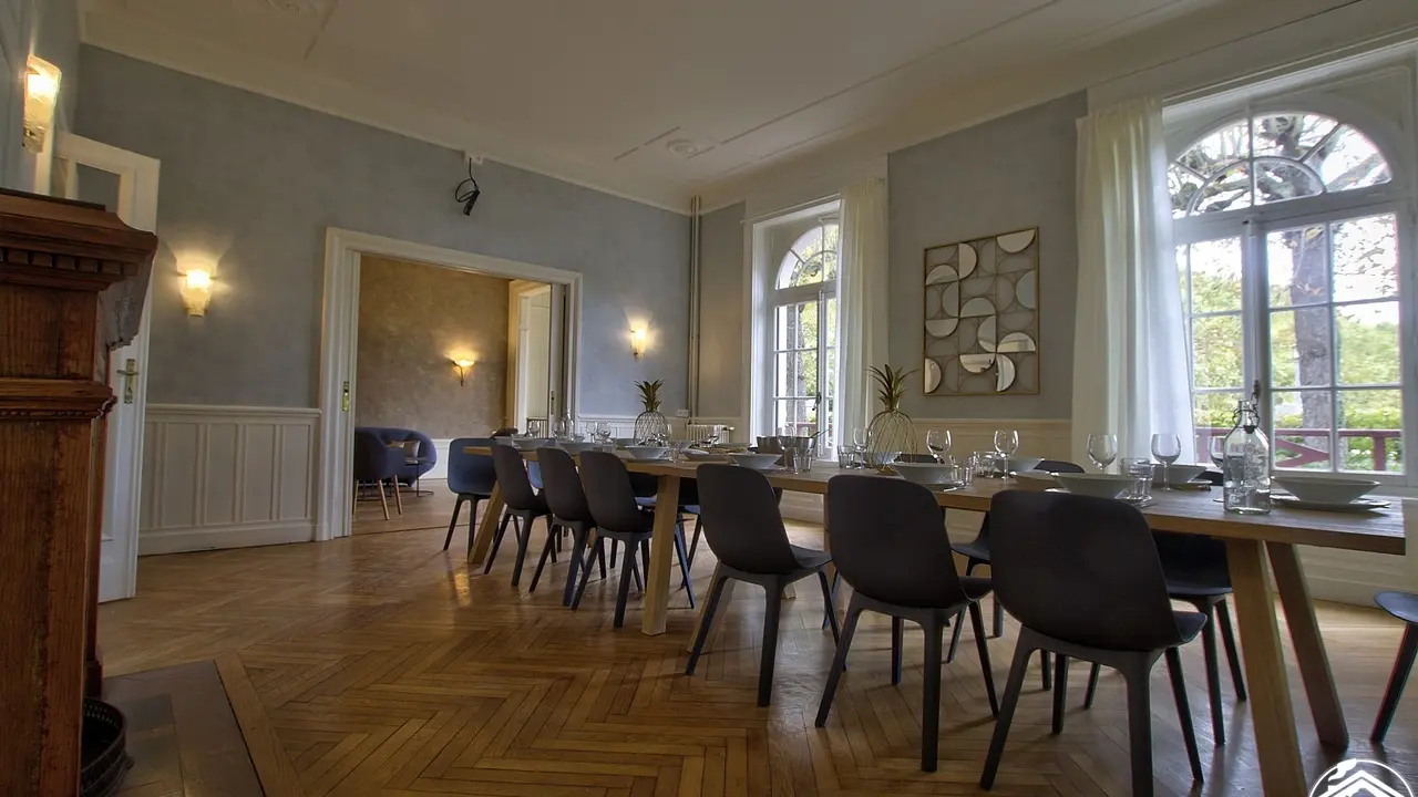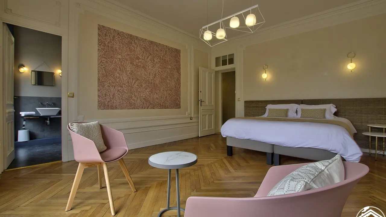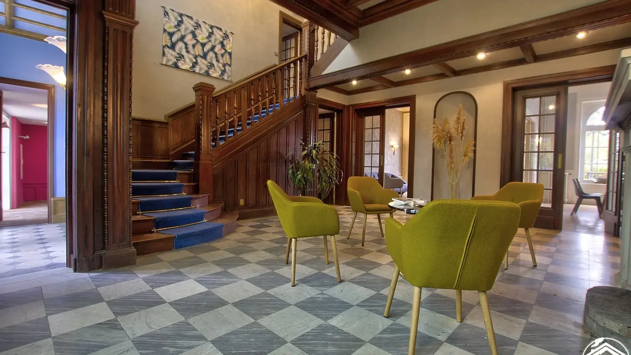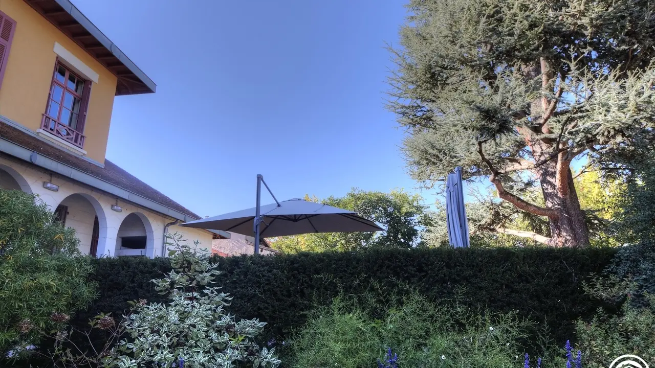 This Art Deco house combines charm and comfort, with an atmosphere of years gone by. The house is located in a suburban area, with a private garden, parking and secure access to enjoy the peace and quiet. As soon as you open the front door, the scene is set with a parade of shimmering colours. At the entrance, on your left is the heated indoor swimming pool, secure and unique with its wooden deck; on your right is the exceptional reception hall with its stained glass windows, fireplace (with insert and working), grand wooden staircase leading to the bedrooms and gigantic crystal chandelier. The hall leads directly to the large lounge with its bow window, and the elegantly decorated dining room. From the hall, on your left, a corridor leads to the kitchen with a French window giving direct access to the garden. Comfortable, functional kitchen with adjoining utility room. Separate WC. Upstairs are the 5 bedrooms, each with its own distinctive character, with extravagant bathrooms and private WC. The half landing leads to the small private lounge and the Louise Brooks bedroom (two single beds or one double bed). A few steps lead down to a large corridor that leads to the 4 bedrooms on either side: Joséphine Backer (2 single beds or 1 double bed) with private terrace and views over the Saône, Coco Chanel (2 single beds or 1 double bed) in crimson, Mistinguett (4 single beds or 2 bunk beds) and