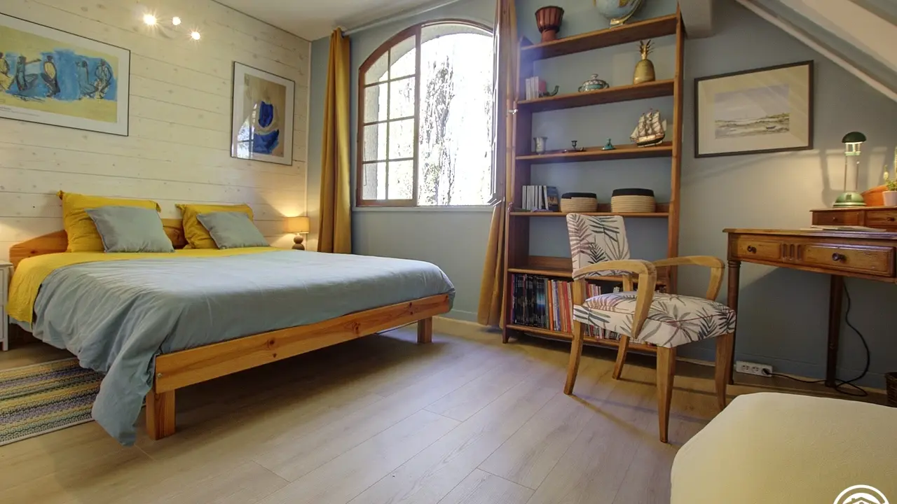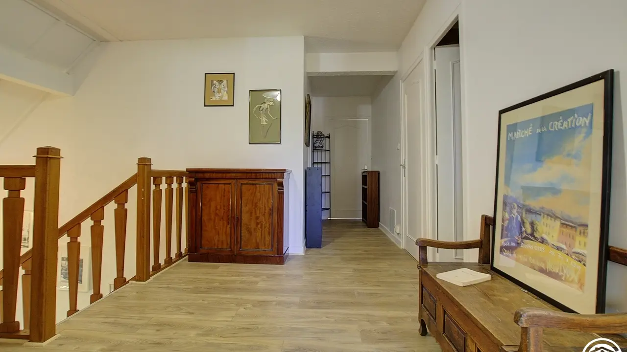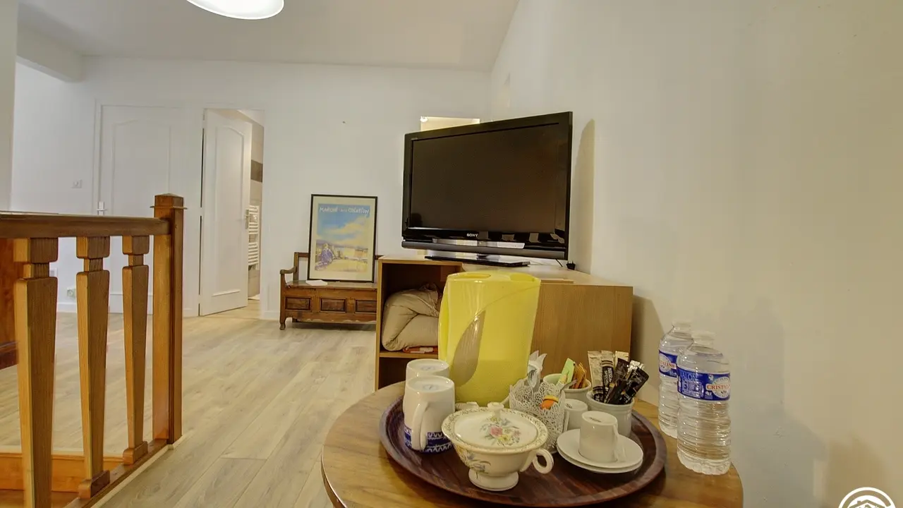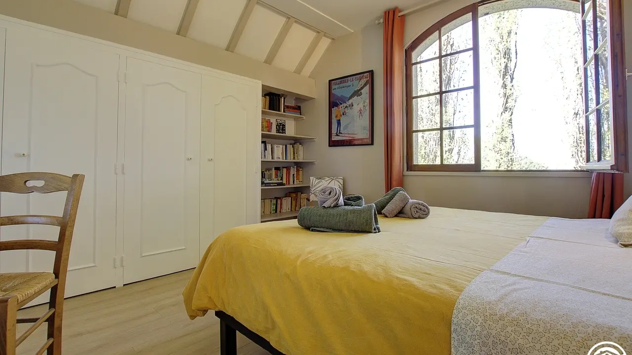 4 km from the center of Belley, Pascal and Brigitte, open the doors of their Bugiste house and offer you two bedrooms located upstairs. From the hall, you access the bedrooms by a wooden staircase, which leads to a first bedroom for 3 people with a 160*200 bed and a 90*190 bed. The second bedroom, adjoining the first, has a 160*200 double bed. The two bedrooms are each equipped with a bathroom (with WC), private to the bedroom but not adjoining (toilets in the hallway). Bathrobes are available for added comfort. This floor includes the two guest bedrooms, as well as a private space for the owners (office and a bedroom reserved for the family).