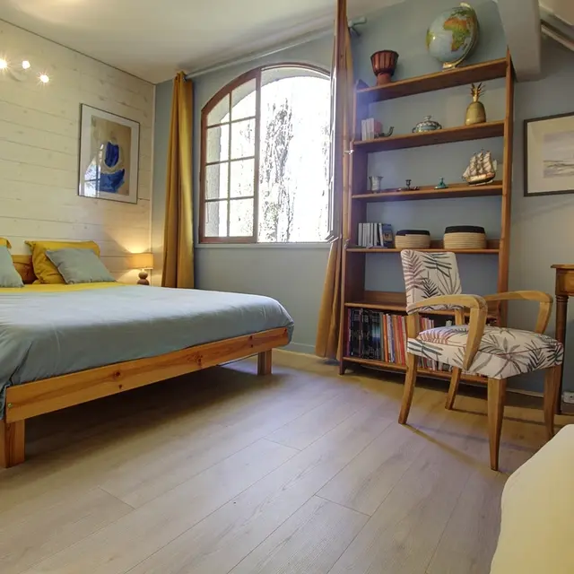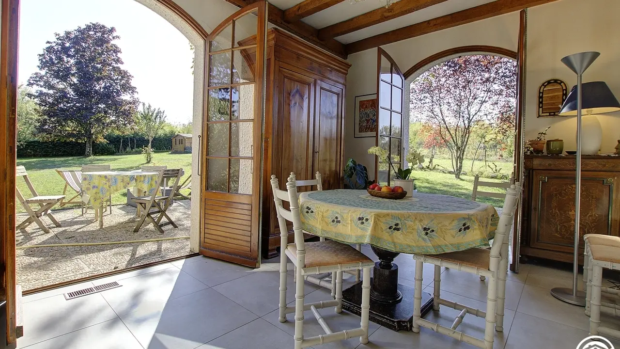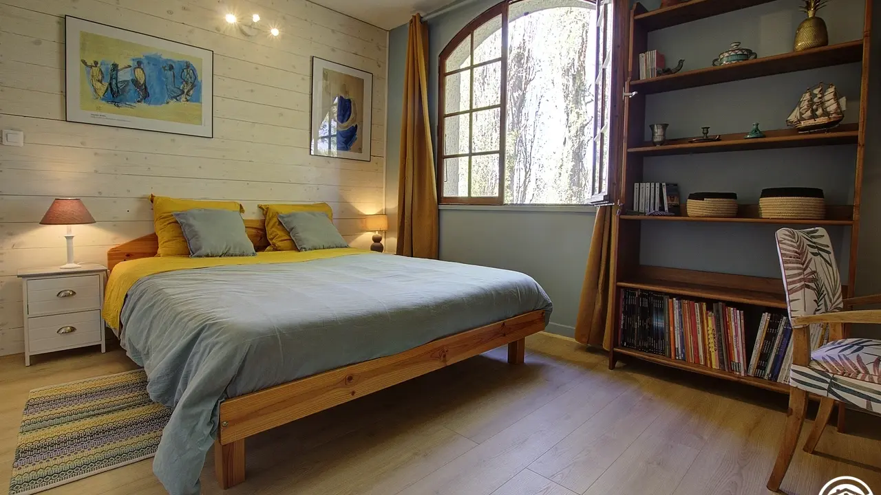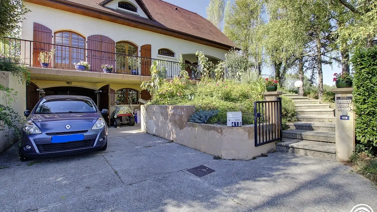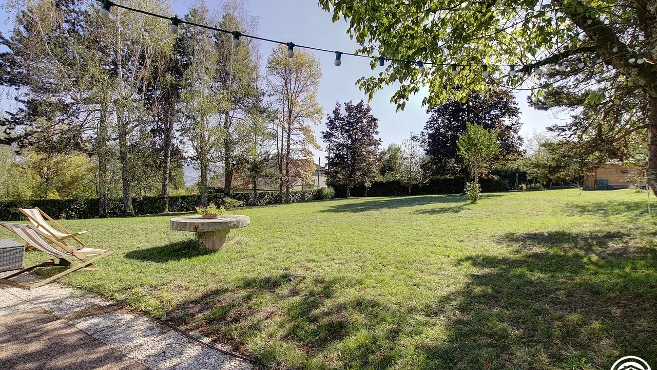 At the same level, a relaxation area with television and courtesy tray, intended for guests. Breakfasts and table d'hôtes or packed lunches (upon reservation) are taken on one of the three terraces on sunny days or in the dining area. for a stopover or an extended stay, you can recharge your batteries in the large park to take advantage of the calm of the place. Parking for two cars (unsecured) located in the courtyard. For lovers of two wheels, a closed room for the safety of bicycles and/or motorcycles. 500 meters away, the Rothone forest offers beautiful walks for young and old. You can also discover Belley, a local region with its chapels, washhouses, bread ovens and wine estates. This former capital of Bugey is ideally surrounded by lakes, rivers, mountains, which will delight nature lovers. Let yourself be transported to the Grand Colombier massif and the Via Rhôna for beautiful hikes, fishing, and discovering local products.