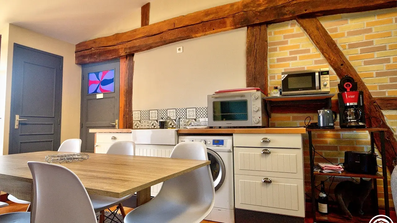 12 km from Bourg-en-Bresse, in the heart of a park planted with trees and flowers, Les Vignes gîte (76 m²) is located on the 1st floor of a Bresse farmhouse. It can accommodate 6 people. A wooden staircase leads directly to the dining area with its relaxing corner. There are three bedrooms to choose from: one with a 160*200 bed, a second with a 180*200 bed, and a third with two 90*200 single beds. Gîte bonus: each room has its own private bathroom with toilet. What's more, beds are made up on arrival, towels are included, as are heating bills... You can also take advantage of the owners' swimming pool (10m*5m, max. 2m deep, gently sloping), accessible only in summer, and enjoy the calm of the site with its garden area and pontoon on the private pond. For an additional fee, you can book a Norwegian bath for up to 6 people at a cost of €30 per session. For a weekend or a longer stay, discover the region with its many tourist attractions: Bourg en Bresse and its Royal Monastery of Brou, the Dombes and the 1000-bird park.
