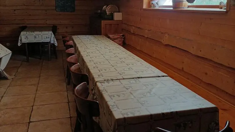 This gite for groups is located 700 m away from the village of Giron. There is an entrance hall, living room with a lounge area (fireplace), ideal to relax with your family or friends. 2 separate WCs. Cosy, chalet-style décor. 5 bedrooms (double bed) (double bed) (double bed, 2 single bunks) (double bed, 2 single bunks) (double bed, single bed), each with own shower & washbasin. 2 separate WCs on the same level. Heating: electric & wood.|Cross-country skiing & hiking trails (start from the gite). For a stage or a longer stay, rent a room or the whole gîte. Frédérique cooks family meals based on local products. No self catering.