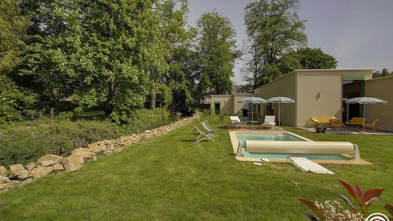 Through a large gate, you enter a large property planted with trees and comprising the owners' house with 3 guest rooms and their adjoining Hauterive and Varey gîtes, to create a single gîte. A separate entrance leads to the living room, where the wood ambiance blends harmoniously with the soft, uncluttered decor and vintage touches. From the living room, a staircase leads to the shower room, separate toilet and two bedrooms of your choice: one with pink tones (a 190*200 bed) overlooking the garden and park, and the other with two single beds (2*90*200), two bull's-eyes and a roof window. On the ground floor, a connecting door leads to the living room of the second gîte, decorated in vintage style and featuring a fully-equipped kitchenette, dining area and lounge. A beautiful wooden staircase takes you up to the 1st floor, where you'll find a master bedroom with a 180*200 bed (separable into two 90*200 beds) and a shower room with small green mosaics and an integrated but independent toilet. The gîte is air-conditioned with reversible floor heating and a heat pump. All-inclusive - beds made up on arrival. Two private north- and south-facing terraces. In this large wooded park, you'll find a small "beach" on the banks of the Oiselon, a small stream running through the property, where you can enjoy the peace and quiet. The owners offer guests two swimming pools: an outdoor pool and an indoor lap pool, located in their main house, as well as a fitness area (cardio and weight training). Discover the Jujurieux silk industry or the Ambronay festival and its baroque concerts.