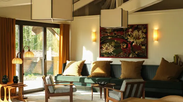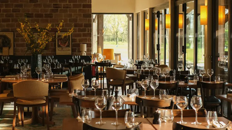 Our Club House, surrounded by picture windows, is the perfect place to enjoy your meal by the fireplace in a cosy atmosphere.