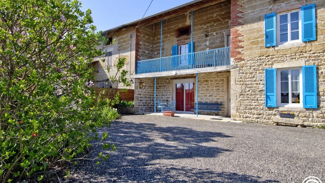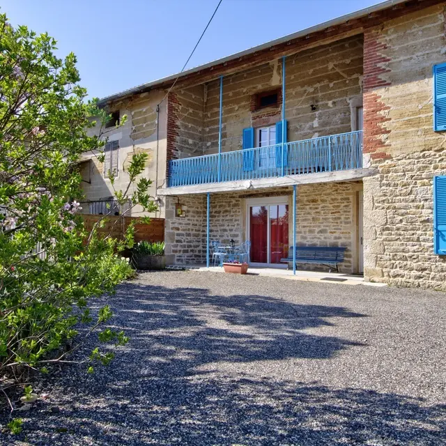 In the heart of the Bresse region, this large 2-storey village house built in 1900 (200 m²) can accommodate 14 people and 5 bedrooms. Shimmering colors, comfort and spaciousness are the watchwords. It's ideal for small groups and family reunions, for a weekend, a short or long stay or a week. The main entrance is from the courtyard, into the large living room with its large wooden table and exposed stone wall, its contemporary, red-toned fitted kitchen, and into the lounge with its farandole of sofas and armchairs. An extension of the living room, the Anis bedroom (2 single beds that can be combined to form a double bed and a sofa bed for 1 person) is unique with its adobe wall and access to the terrace at the rear of the gîte. Shower room, separate WC. The 1st floor leads directly to another living room with a large balcony, featuring a blue balustrade and old-fashioned parquet flooring. There are 4 bedrooms to choose from. The Orange room (1 bed 160) and the Taupe room (4 beds 90), both on the courtyard side. The Violette room (1 bed 140) and the Grise room with its decorative fireplace (1 bed 180 and 1 bed 90) face the road. On the same level, a bathroom and WC. Tucked away at the rear of the gîte, and accessible from the living room, is the terrace with its garden furniture, where you can welcome your "tribe" outside. The gîte is set back from the main road running through the village. At the gateway to Burgundy, discover the bucolic Bresse countryside, the Fermes Bressanes with their Saracen fireplaces, the Ferme des Planons and, for gourmets, AOC Bresse poultry. Bresse also boasts a number of lakes.