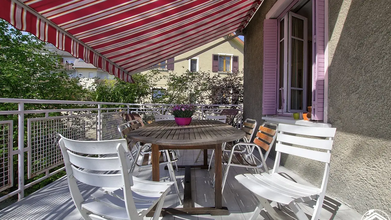 Fully renovated family house (250 sq.m.) at foot of the Col de la Biche, in hamlet of Corbonod at heart of Gignez, 5 min. from Seyssel. Accommodation on 3 levels for 14 people - 6 bedrooms, 2 shower rooms, 3 WCs. Charming detached house with pink shutters on gated property. 2 stone steps up to light & airy entrance hall (colourful tiled floor) with doors leading to living rooms. On right: separate fitted kitchen. On left: small TV lounge. Straight ahead: large sitting/dining room (40 sq.m.), perfect for dining with friends or family, with fireplace (ideal for snuggling up and enjoying peace and quiet in winter). Lounge opens onto large, south-facing tiled terrace which is sure to be a hit with people of all ages. Separate WC. 1st floor: parquet corridor leading to 5 bedrooms. Yellow, Pink and Blue rooms (two 80x200cm beds which can joined to form queen-size beds, if required). Mauve room (two 80x200cm beds, 130cm wide bed for 1 person). Small bedroom (100cm wide bed for 1 person) with wrought iron frame. Shower room/WC.|Door in corridor opens onto staircase to 2nd floor (attic): large, light & airy bedroom (80 sq.m.) with four 90x200cm beds, exposed beams, own shower room (walk-in shower), separate WC (wash-hand basin). Cellar (inside and outside access) with utility area (washing machine, tumble drier), space to keep bikes. Fenced garden (BBQ, plancha) will delight the whole family. Central heating. Car can be parked on the property. Single garage.