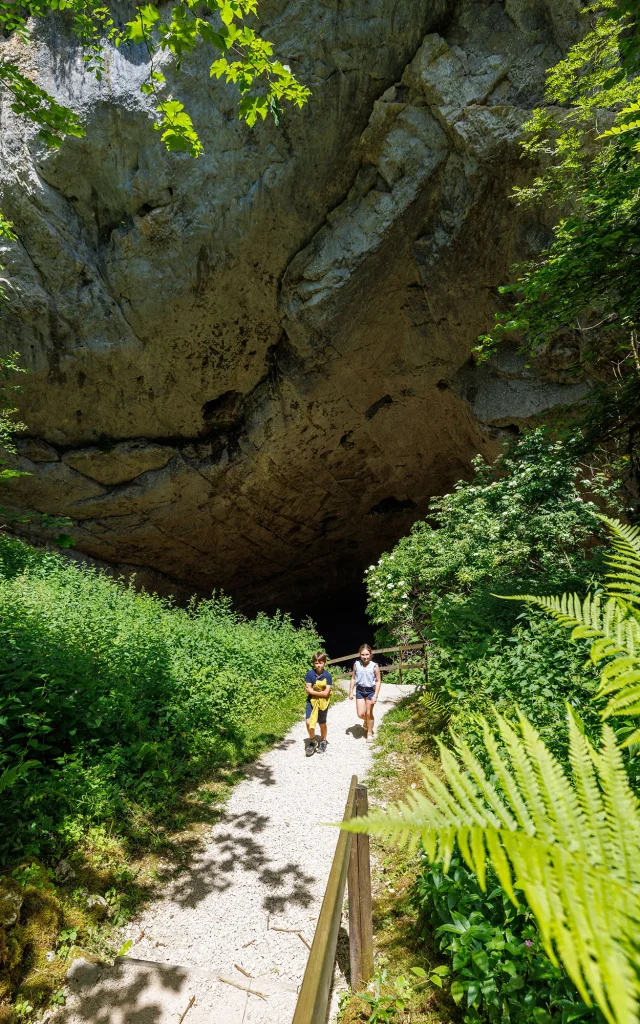 But the grand finale awaits you at the exit, in the immense rock hall carved out by the river siphon. The river’s resurgence in the middle of the cliff has opened up a belvedere overlooking a valley carved out by the tumultuous flow: a breathtaking view of the Cerdon vineyards.