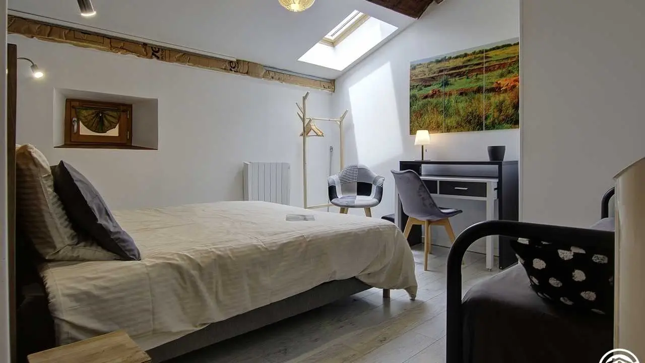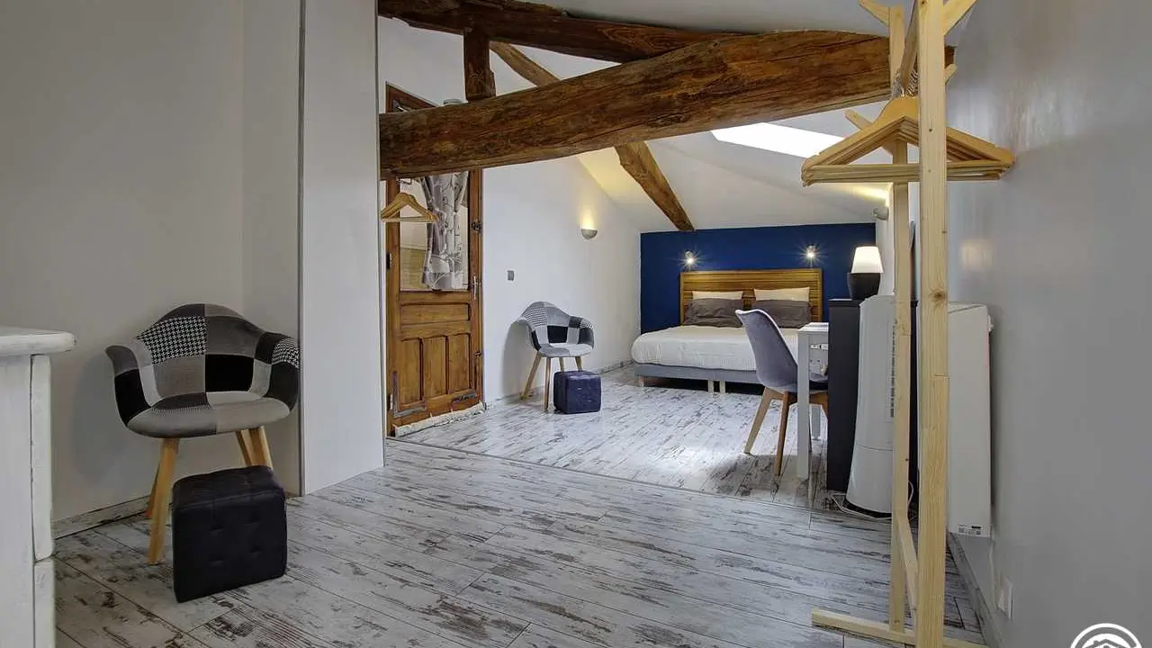 Au cœur d'un hameau de Servignat, en pleine campagne, Emmanuel vous propose 3 chambres d'hôtes à la décoration douce et épurée, situées à l'étage, et dans le prolongement de la résidence des propriétaires. Dans cette ancienne ferme bressanne entièrement rénovée, par une entrée indépendante, vous accédez sur une pièce de vie, depuis laquelle l'accès aux chambres se fait par un escalier. Le palier s'ouvre sur la première chambre composée d'un lit double en 160*200, la deuxième chambre est équipée d'un lit en 160*200 et d'un lit simple (adapté pour un enfant) et enfin la dernière chambre comprend un lit double en 160. Toutes les chambres disposent d'un bureau et d'une salle d'eau avec WC privative à la chambre. Les petits déjeuners et la table d'hôtes (sur réservation) élaborés avec des produits locaux et faits maison, sont pris sur la terrasse couverte l'été ou dans l'espace repas destiné aux hôtes. Un salon de détente, surplombant le séjour, est équipé d'un coin bibliothèque, afin de prendre le temps à la rêverie . Pour une halte ou un séjour plus long, le parc arboré est conçu, pour se détente, faire des siestes, à l'ombre, dans les hamacs, transats et profiter du calme des lieux. Proche de la chambre : Base de Loisirs de Montrevel (15km), Port de plaisance de Pont de Vaux (10km), de nombreux sentiers pédestres, pour les vélos : Voie Bleue (10km) et Traversée (1,5km) et de nombreux circuits ... sans oublier la pêche en rivière, étang ou ruisseaux. Faites le plein d'activité, que vous soyez petits ou grands, vous trouverez forcément votre bonheur. Le remplissage de l'eau de la piscine et son usage par les locataires peuvent être restreints en application des arrêtés « sécheresse » de la préfecture de l'Ain.