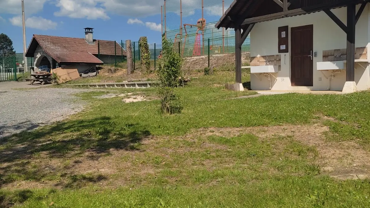 Terrain nu et arboré accueillant. Tentes, caravane, camping-car d'une capacité de 19 emplacements avec électricité, sanitaires communs et PMR.