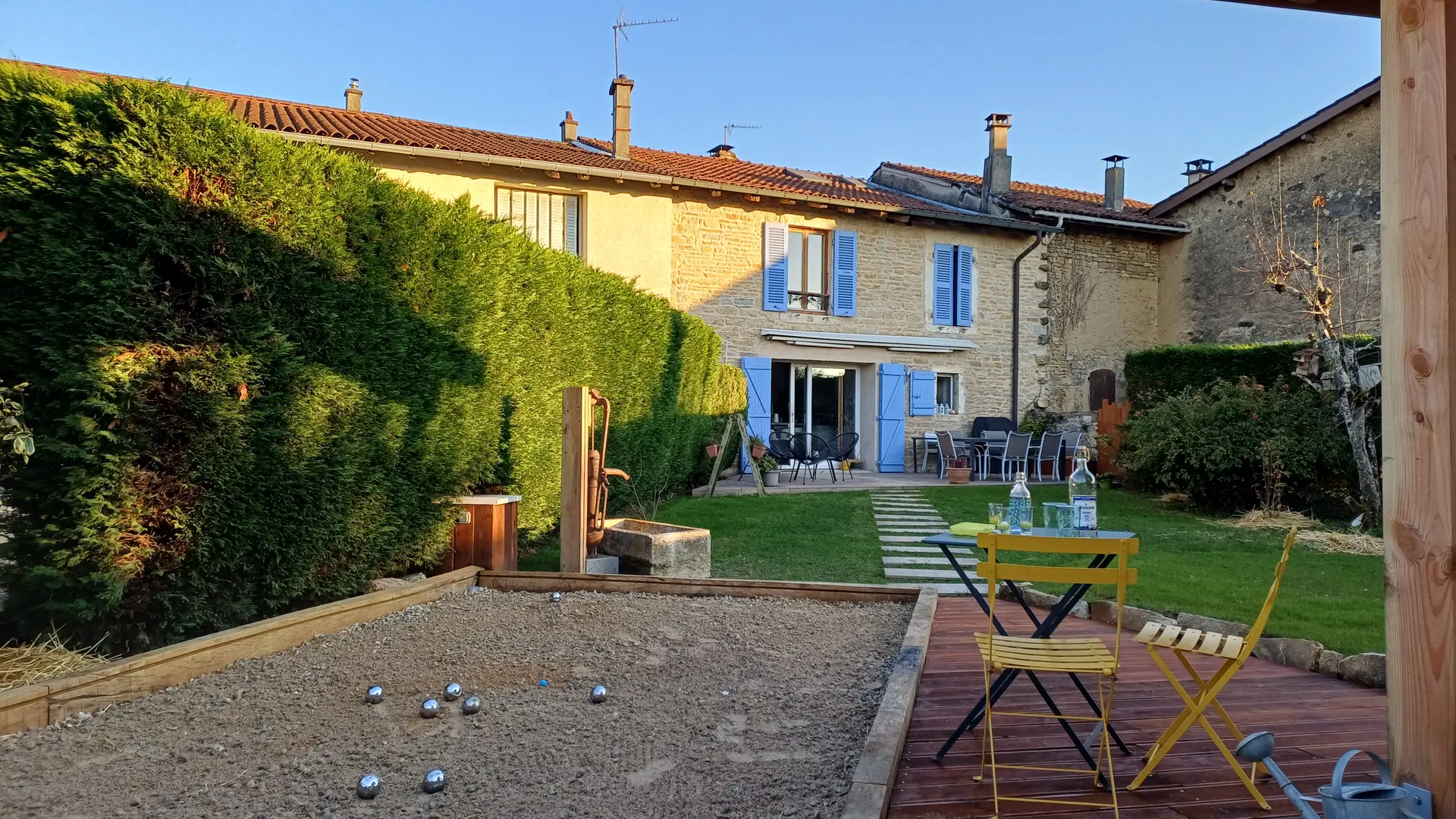 Vous profiterez des fauteuils et transats, ouvrirez les parasols et vous accorderez des temps de détente et de partage autour du terrain de pétanque ou du jeu de fléchettes, pendant que les enfants enchaîneront les jeux de plein air.