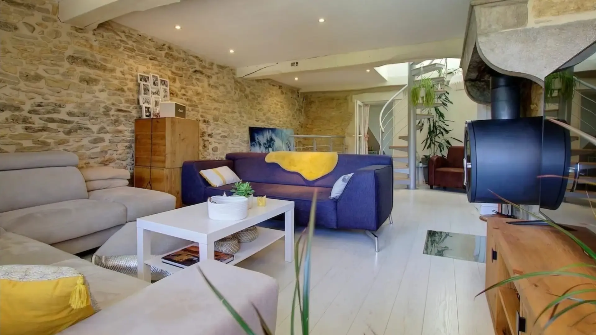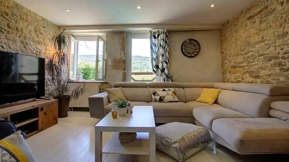 Vous accéderez ensuite au corps de maison et apprécierez ses pièces spacieuses, réparties sur 3 niveaux, l’ancien qui se mêle au moderne avec une décoration très actuelle. Ses épais murs de pierres conservent la fraîcheur en été, ses poutres apparentes et ses pièces mansardées lui donnent un cachet incroyable.