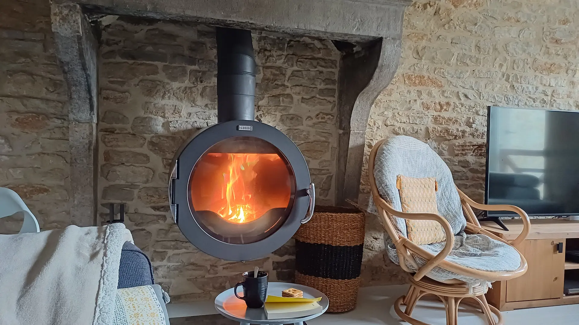 Au 1er, le second salon offre une TV grand écran, des jeux de société, des bibliothèques et une cheminée authentique en pierre avec un insert moderne.