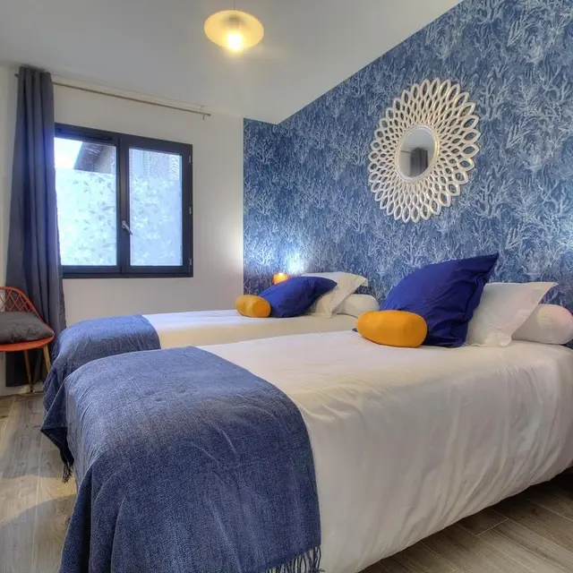 Bienvenue dans ce nouveau gîte de plain-pied, idéal pour profiter à la fois d'un cadre naturel ressourçant et d'une proximité immédiate avec le parc d'activité de la Plaine de l'Ain. Pensée pour accueillir jusqu'à 6 personnes, la maison dispose de trois chambres harmonieuse et d'une décoration actuelle, mêlant nuances de bleu, motifs fleuris élégants et quelques pièces de caractère qui apportent juste ce qu'il faut de style et de personnalité.