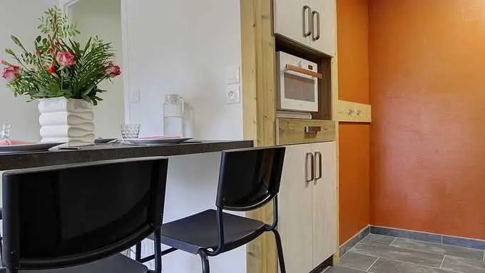 Au cœur du Hameau de Saint Sulpice, sur la commune du Plateau d'Hauteville, le Gîte du Marais (45m²) de plain-pied, se situe au rez-de-chaussé de la maison, avec une terrasse privative et indépendante. Ce gîte a été rénové pour vous proposer un gîte lumineux et des matériaux de qualité. Devant le gîte, une place de parking privée. L'entrée principale donne sur une cuisine équipée et fonctionnelle avec son mange-debout et son espace salon. Dans son prolongement, un couloir dessert un WC indépendant, une salle d'eau et deux chambres, avec accès direct sur la terrasse privée. La première chambre est équipée d'un lit en 140*190 et la deuxième chambre comprend un lit en 90*190 et un second lit en 90*200.