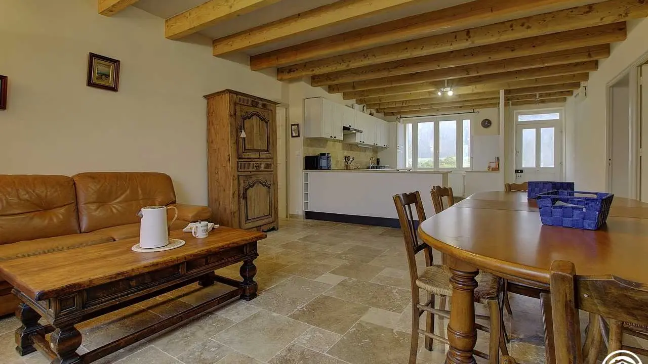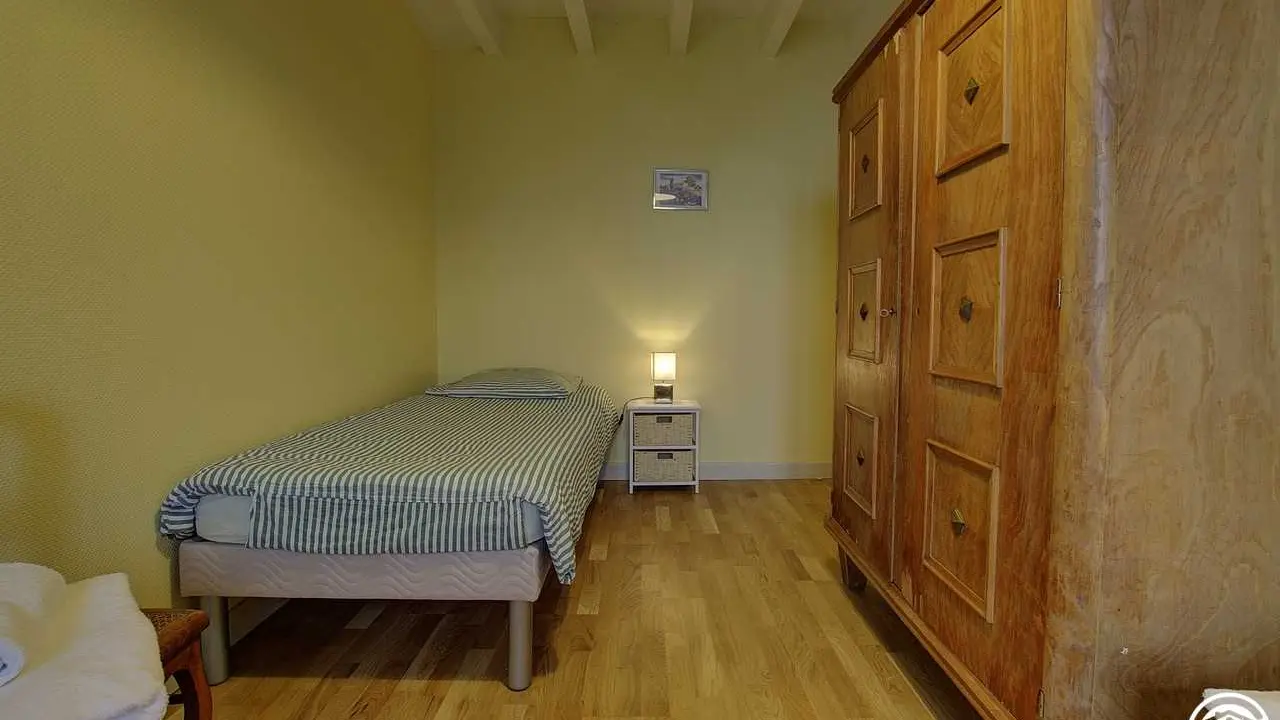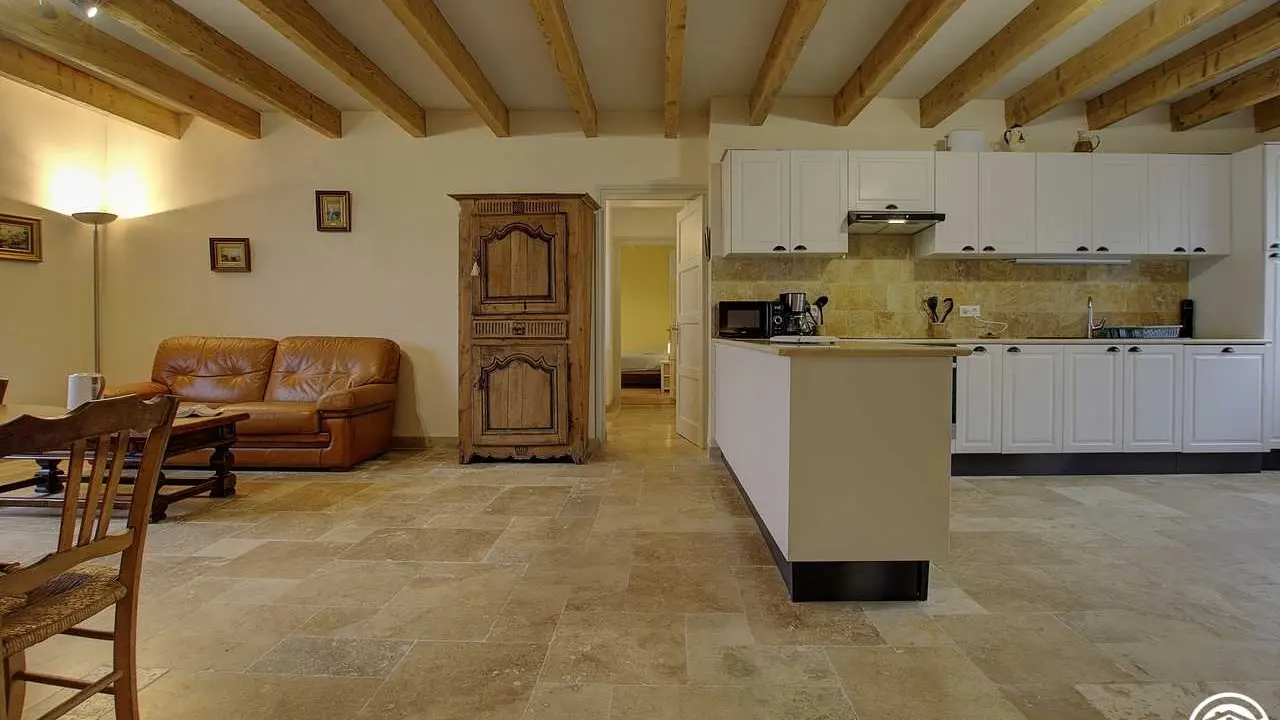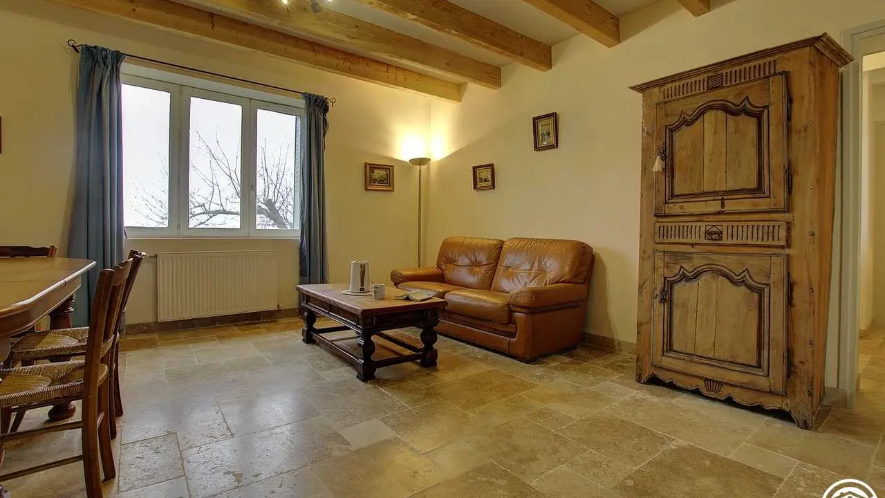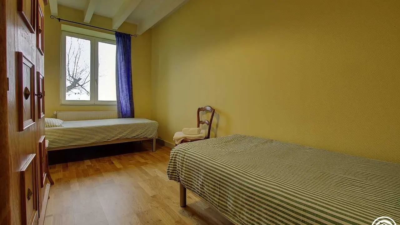 L'entrée sur la propriété se fait depuis la cour, puis l'accès se fait depuis la grande pièce de vie lumineuse comprenant une cuisine équipée blanche avec plan de travail en pierre, un séjour et son espace salon avec au sol de la pierre naturelle. Sur votre gauche, deux chambres comprenant chacune deux lits simples en 80*200, avec une porte communicante entre elles si besoin. Sur votre droite, une troisième chambres équipée également de deux lits simples en 80*200. Une belle salle d'eau avec douche à l'italienne et un WC indépendant viennent compléter ce bien. Depuis le couloir de cet espace, un accès direct sur une terrasse couverte de 21.45 m² avec un billard pour vos moments de détente. Le gîte dispose d'extérieurs privés au gîte dont un abri voiture, un jardin et une cour. Chauffage fioul. A votre arrivée, les lits sont faits, le linge de toilette et les charges sont comprises. A visiter : la base de loisir de Chambod, le musée de la Soierie sur Jujurieux, la citée médiévale de Perouges et Ambronay.