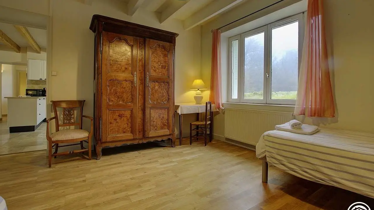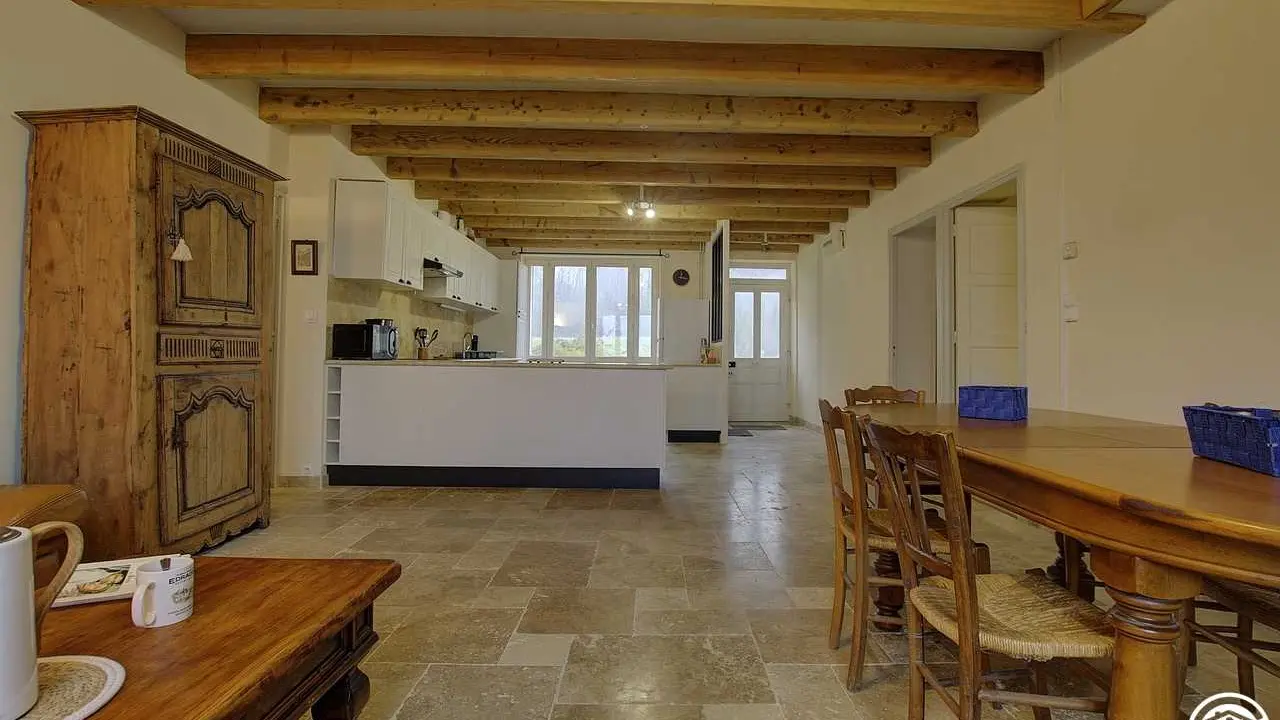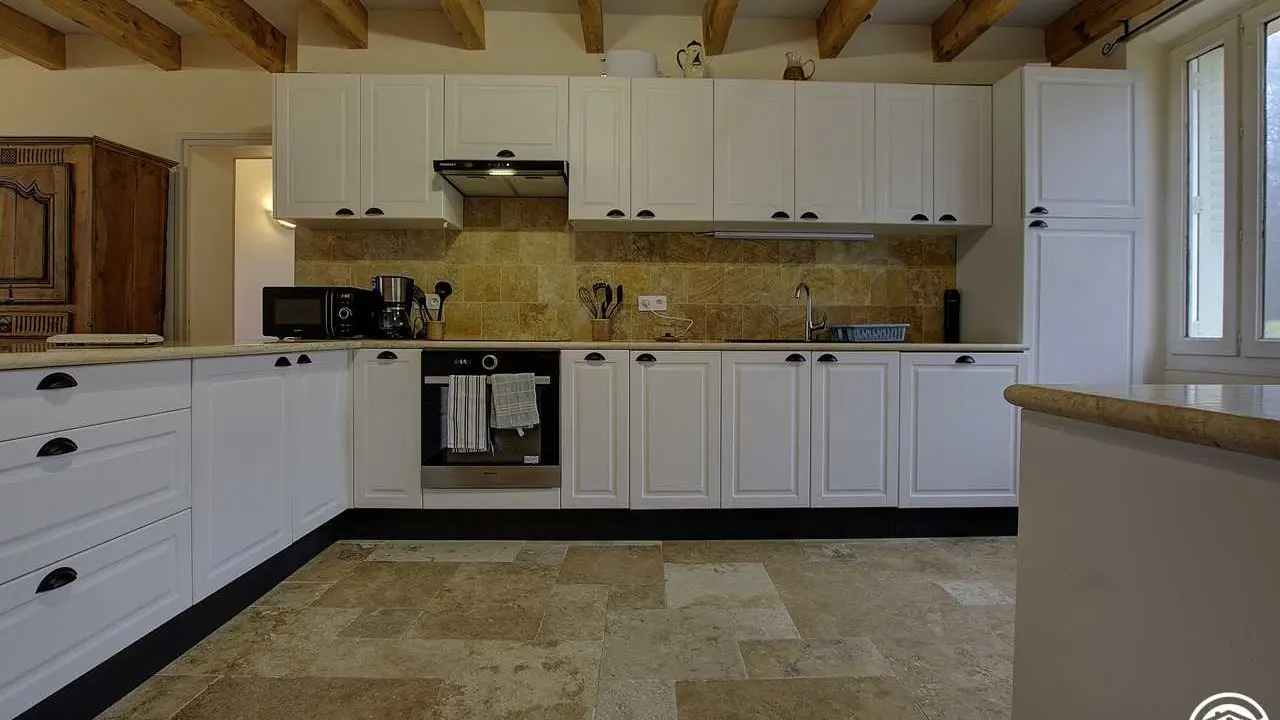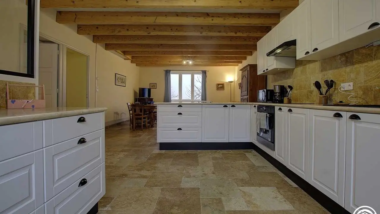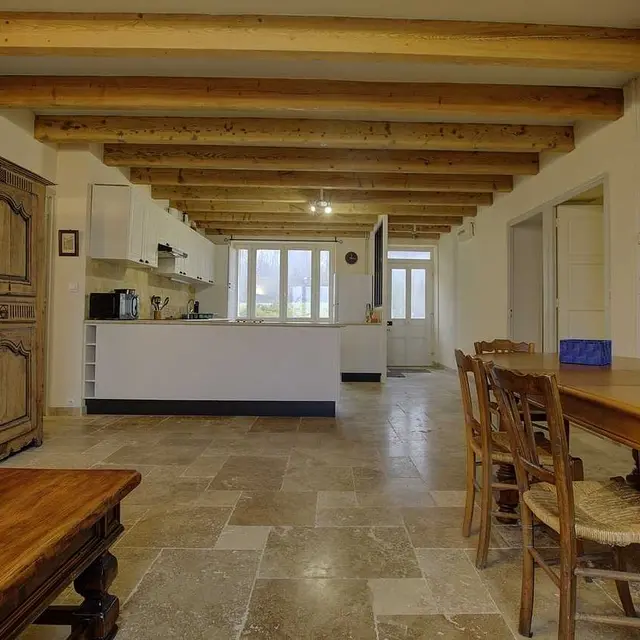 L'entrée sur la propriété se fait depuis la cour, puis l'accès se fait depuis la grande pièce de vie lumineuse comprenant une cuisine équipée blanche avec plan de travail en pierre, un séjour et son espace salon avec au sol de la pierre naturelle. Sur votre gauche, deux chambres comprenant chacune deux lits simples en 80*200, avec une porte communicante entre elles si besoin. Sur votre droite, une troisième chambres équipée également de deux lits simples en 80*200. Une belle salle d'eau avec douche à l'italienne et un WC indépendant viennent compléter ce bien. Depuis le couloir de cet espace, un accès direct sur une terrasse couverte de 21.45 m² avec un billard pour vos moments de détente. Le gîte dispose d'extérieurs privés au gîte dont un abri voiture, un jardin et une cour. Chauffage fioul. A votre arrivée, les lits sont faits, le linge de toilette et les charges sont comprises. A visiter : la base de loisir de Chambod, le musée de la Soierie sur Jujurieux, la citée médiévale de Perouges et Ambronay.