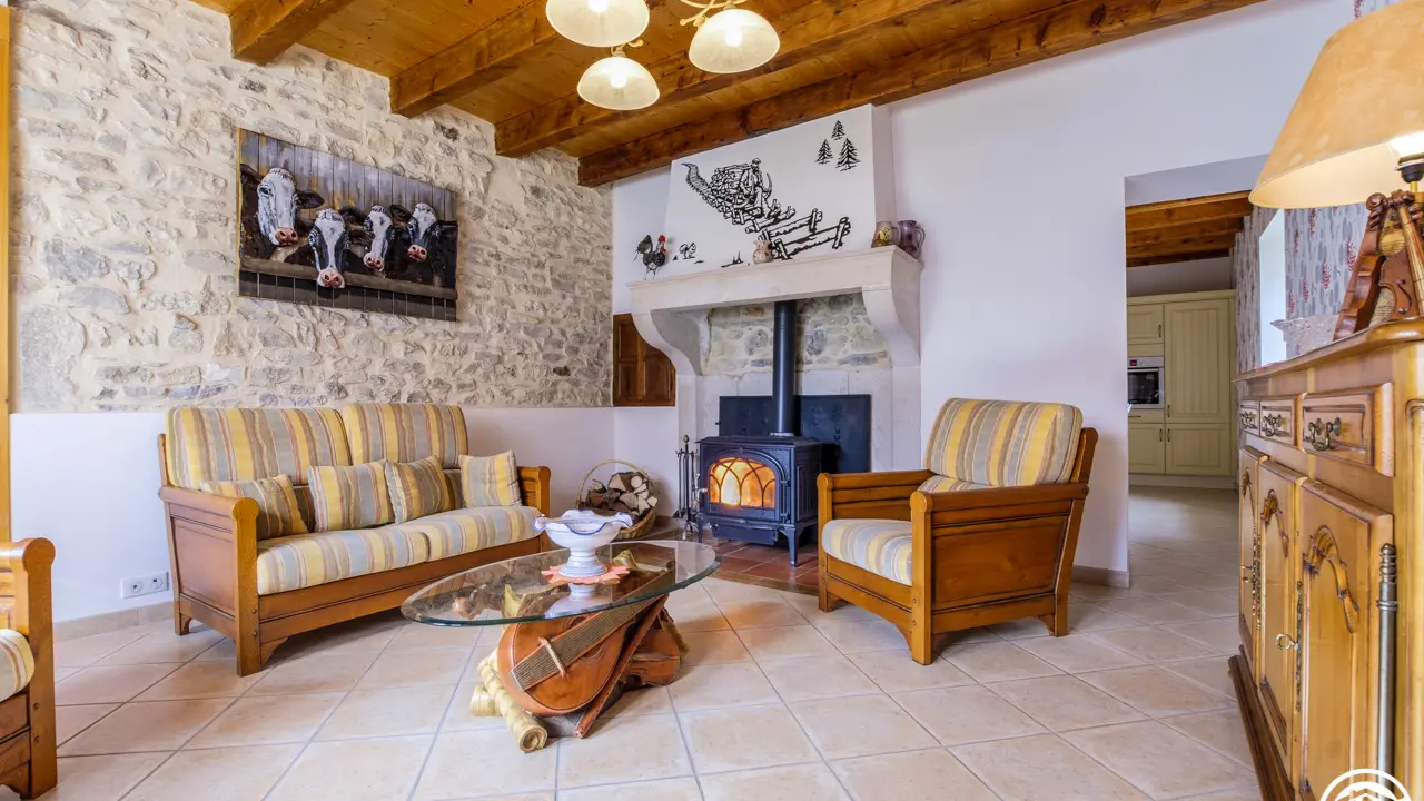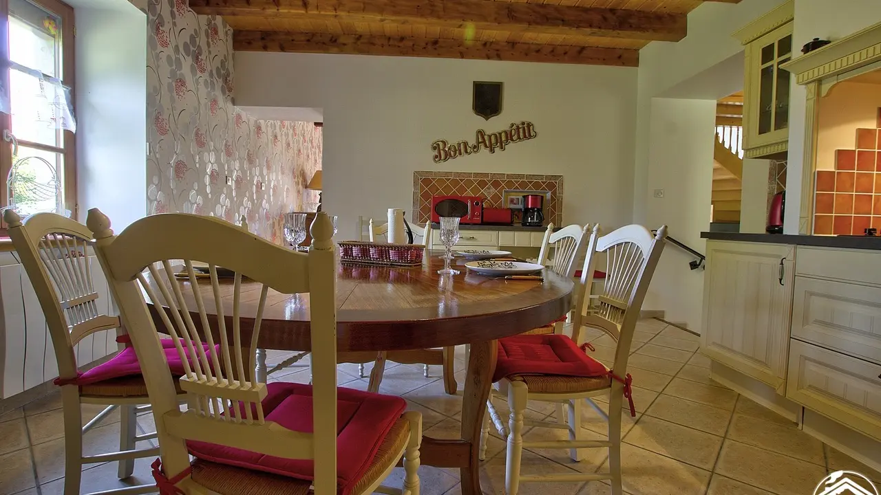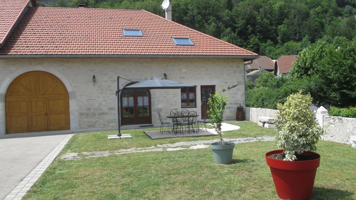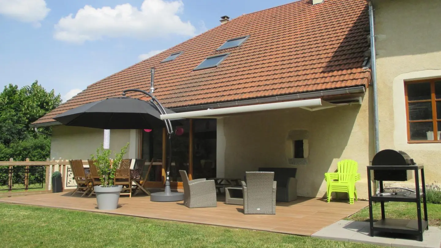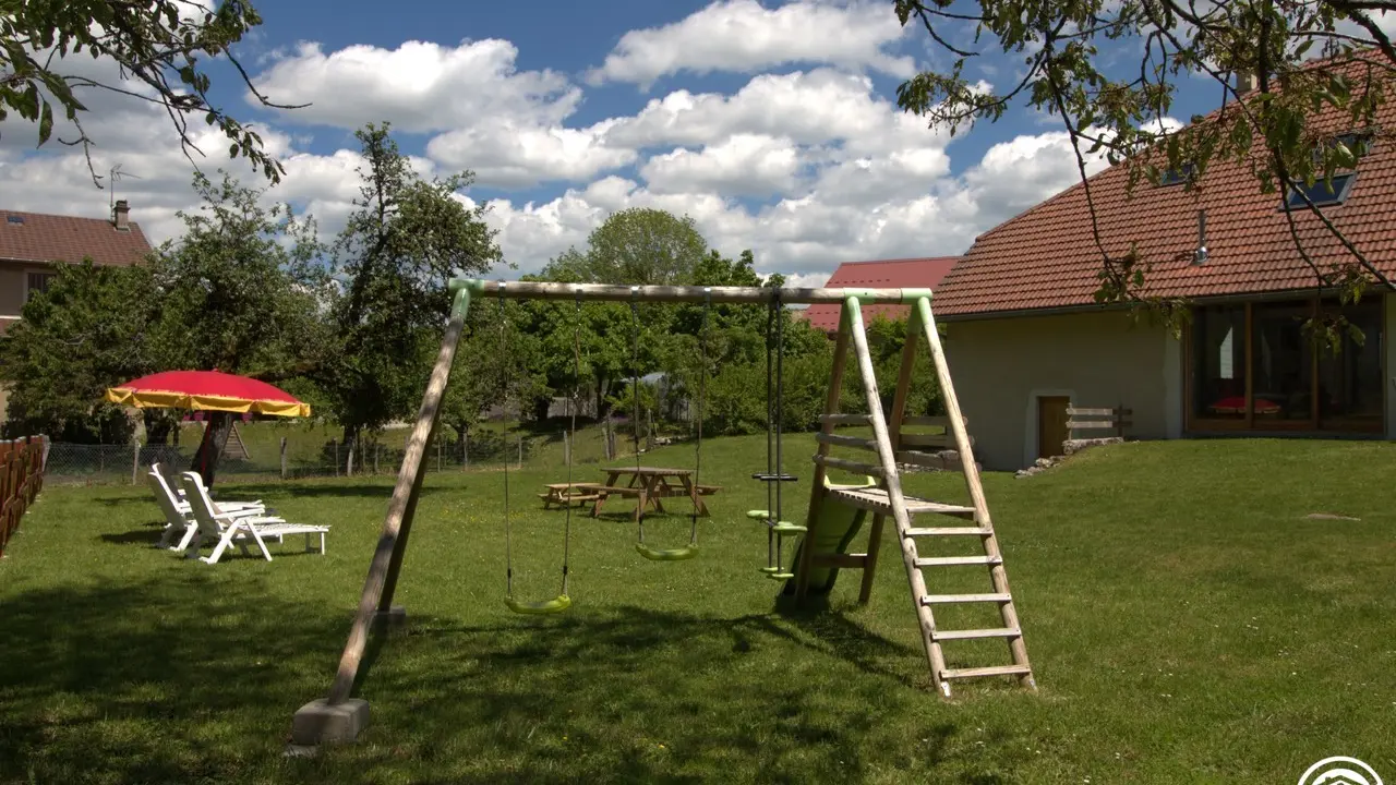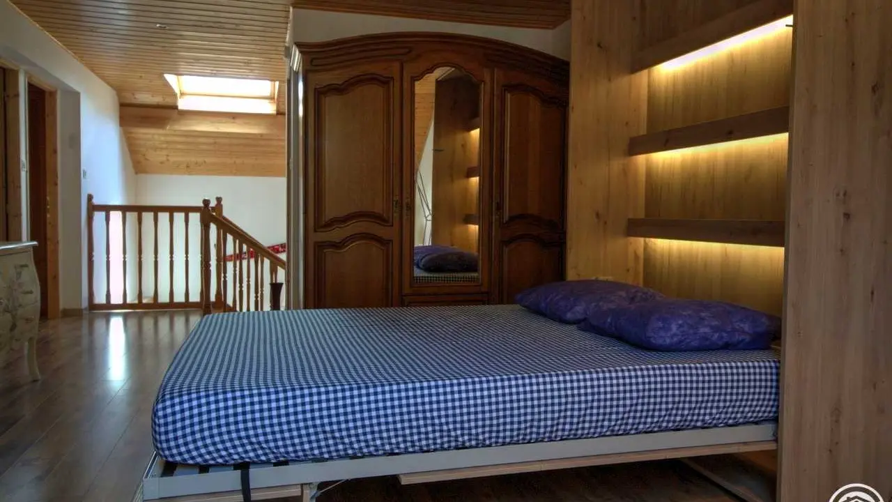 A 860 m d'altitude, dans un hameau proche d'Hauteville (6 km) , grand gîte indépendant de 200 m² sur différents niveaux, pour une capacité de 8 personnes avec ses 3 chambres. Par une cour commune, vous accédez sur un salon de détente, une grande cuisine fonctionnelle et très bien équipée, une salle d'eau avec douche atypique de type scandinave en bois de cèdre. Quatre marches plus bas, un grand séjour et son coin salon avec des larges baies vitrées et une lumière traversante, un poêle alsacien pour les saisons d'hiver ; une belle véranda avec salon de détente avec grande ouverture sur le jardin. Quelques marches plus haut, un escalier en bois qui vous mènera sur une mezzanine comprenant un lit armoire pour deux personnes (couchage en 140) et 3 chambres : deux chambres avec un lit en 140*190 dont une avec dressing et une chambre comprenant deux lits en 90*190, possibilité d'une personne supplémentaire ; salle de bain, WC indépendant avec lave-main. Chauffage électrique et bois. Garage privé pour deux véhicules. Ce gîte a été rénovée avec une décoration maison de famille, avec des matériaux de qualité, et vous proposer des courts ou longs séjours entre amis ou en famille. Proche des stations de ski de fond et alpin, venez découvrir un cadre de verdure et de montagne où les propriétaires se feront une joie de donner leurs meilleures adresses. Deux luges sont mises à votre disposition. Pour un accueil de 4 à 8 personnes, tarifs dégressifs.