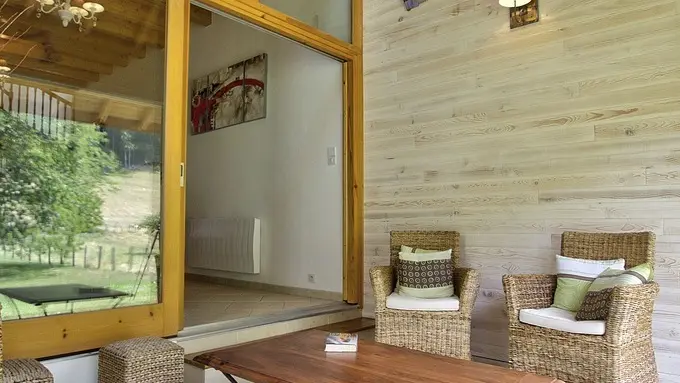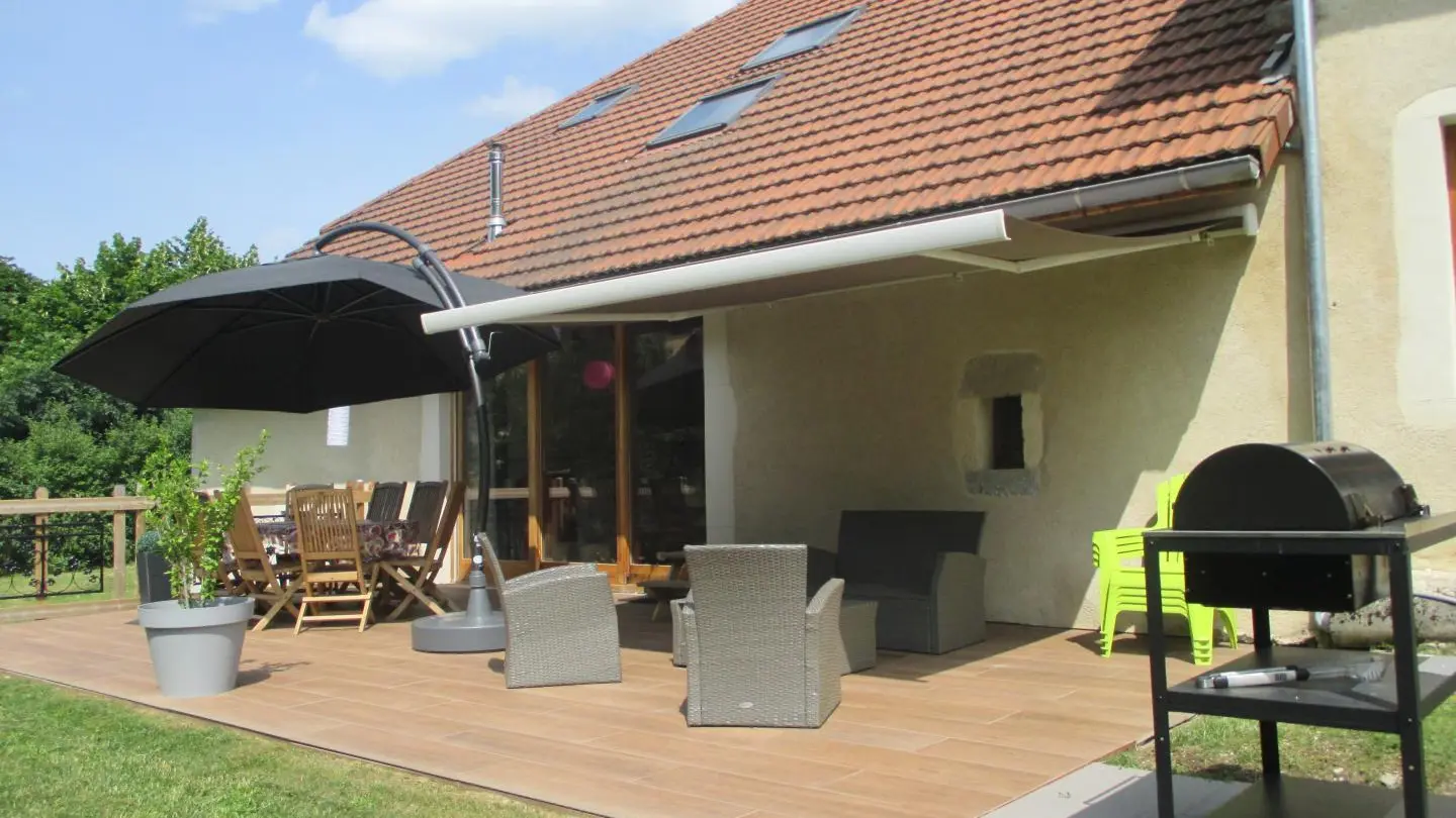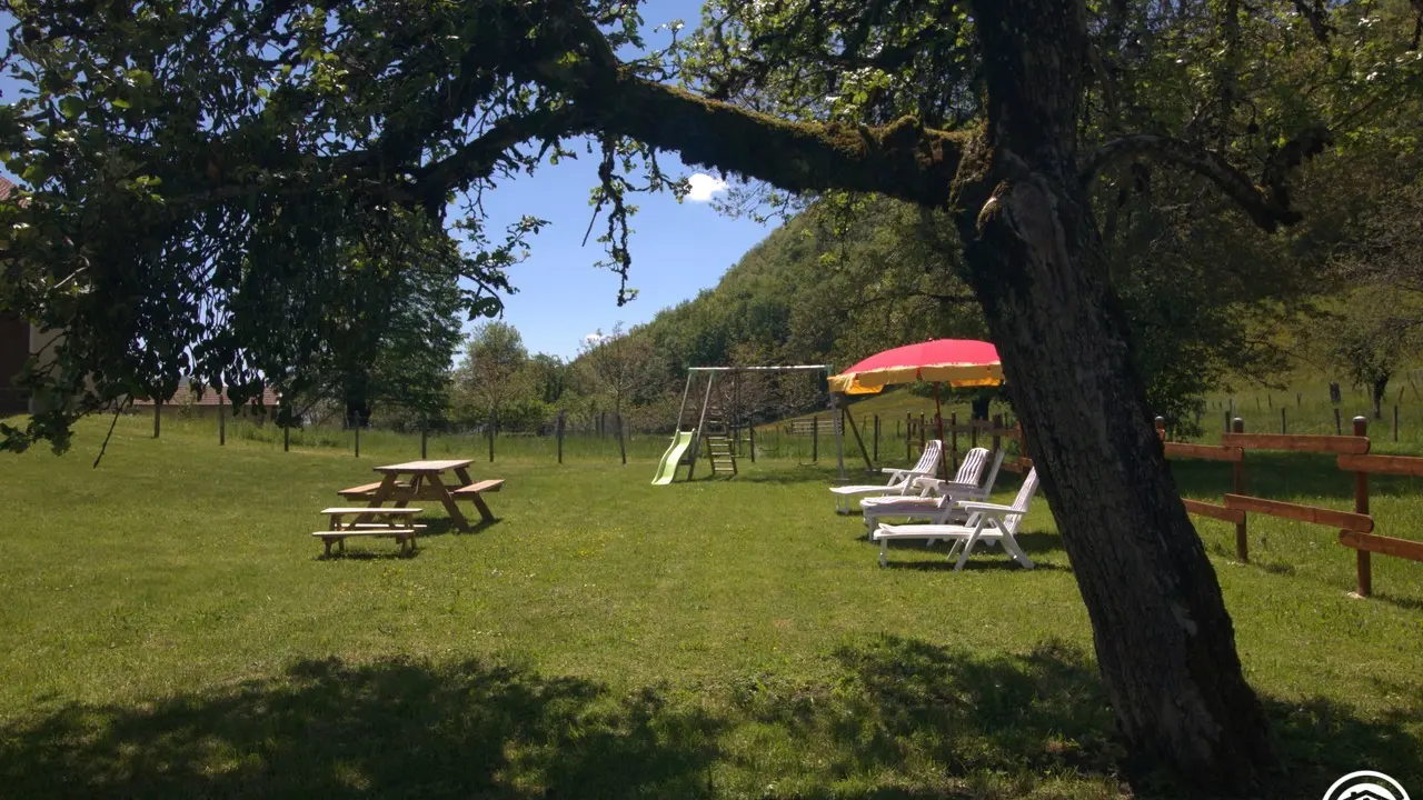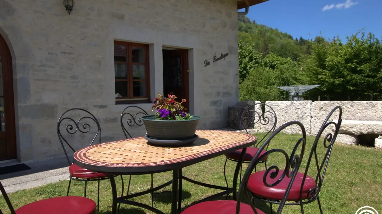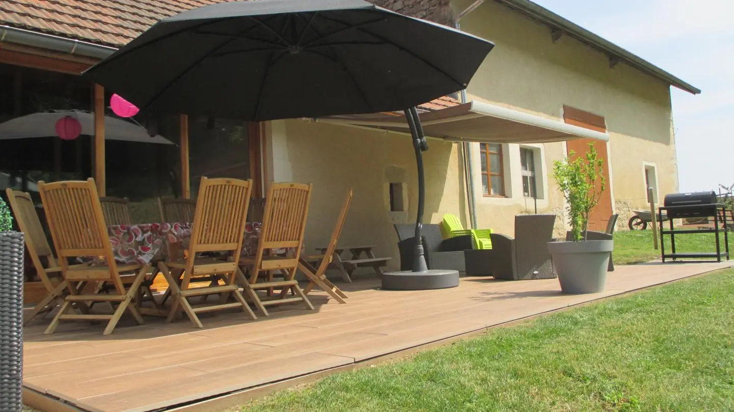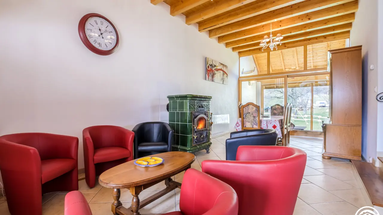 A 860 m d'altitude, dans un hameau proche d'Hauteville (6 km) , grand gîte indépendant de 200 m² sur différents niveaux, pour une capacité de 8 personnes avec ses 3 chambres. Par une cour commune, vous accédez sur un salon de détente, une grande cuisine fonctionnelle et très bien équipée, une salle d'eau avec douche atypique de type scandinave en bois de cèdre. Quatre marches plus bas, un grand séjour et son coin salon avec des larges baies vitrées et une lumière traversante, un poêle alsacien pour les saisons d'hiver ; une belle véranda avec salon de détente avec grande ouverture sur le jardin. Quelques marches plus haut, un escalier en bois qui vous mènera sur une mezzanine comprenant un lit armoire pour deux personnes (couchage en 140) et 3 chambres : deux chambres avec un lit en 140*190 dont une avec dressing et une chambre comprenant deux lits en 90*190, possibilité d'une personne supplémentaire ; salle de bain, WC indépendant avec lave-main. Chauffage électrique et bois. Garage privé pour deux véhicules. Ce gîte a été rénovée avec une décoration maison de famille, avec des matériaux de qualité, et vous proposer des courts ou longs séjours entre amis ou en famille. Proche des stations de ski de fond et alpin, venez découvrir un cadre de verdure et de montagne où les propriétaires se feront une joie de donner leurs meilleures adresses. Deux luges sont mises à votre disposition. Pour un accueil de 4 à 8 personnes, tarifs dégressifs.