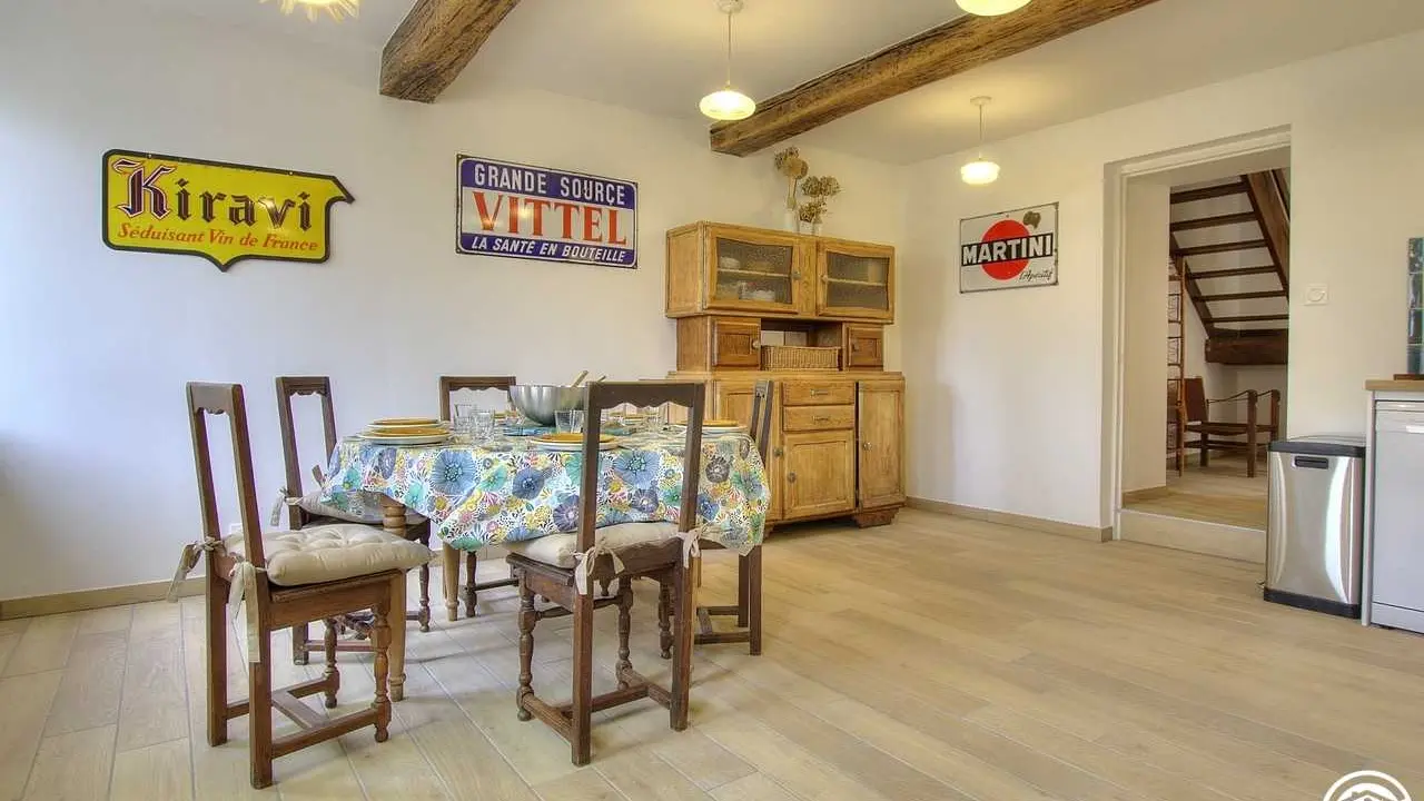 A proximité du Beaujolais et des berges de la Saône, cette petite maison de ville avec jardin clos, vous donne envie de poser vos valises. ...Sa décoration aux touches Vintage, vous emportera dans un cadre paisible et douillet. Pour vos vacances découvertes, nul doute que vous apprécierez cette région qui propose de nombreuses activités : Touroparc, Le Parc des Oiseaux, les caves du Beaujolais. Vous souhaitez devenir capitaine le temps de votre séjour ? Alors accostez ! Laissez-vous voyager sur les bords de Saône, avec les petits bateaux de plaisance qui naviguent lentement. Le mal de mer vous surprend, partez pour des découvertes culturelles et pourquoi pas emprunter le chemin du Curé d'Ars qui relie Montmerle à Ars-sur-Formans. Voyagez léger : Jérôme et Marie pensent à vous ! Les lits sont faits à l'arrivée, le linge de toilettes et de maison sont fournis. Au rez-de-chaussée : une cuisine ouverte sur séjour, un salon semi ouvert, une salle d'eau et un WC indépendant. Au 1er étage : un hall dessert 3 chambres dont une grande chambre avec deux lits simples (90*190), une chambre avec un lit double en 160*200, et une troisième chambre avec deux lits simples (90*190). La maison est située au bout d'une impasse. Parking possible devant le garage (non accessible) pour les voitures mais disponible pour les deux roues. Le gîte la Voie Bleue possède un petit jardin clos avec terrasse.Chauffage en supplément