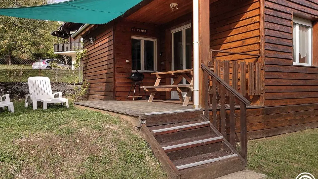 Ce chalet de 45 m² peut accueillir jusqu'à 6 personnes. le Valserine et le Volferine sont deux gites situés à 700 m d'altitude disposant d'un parking commun. Accès au Volferine, par des marches en bois sur une terrasse de 8 m² orientée plein Sud, un séjour comprenant un canapé convertible pour deux personnes, cuisine équipée aux tons noire et ouverte sur le coin repas. Deux chambres à votre disposition : une chambre composée d'un lit en 140*190 et la seconde chambre comprenant deux lits en 90*190 aux tons bleu, avec parquet flottant. Salle d'eau avec WC cloisonné à l'intérieur. Chauffage électrique en supplément. Le + de ce chalet : possibilité de se réunir entre amis ou en famille avec une capacité totale de 12 personnes grâce à ces deux chalets indépendants.