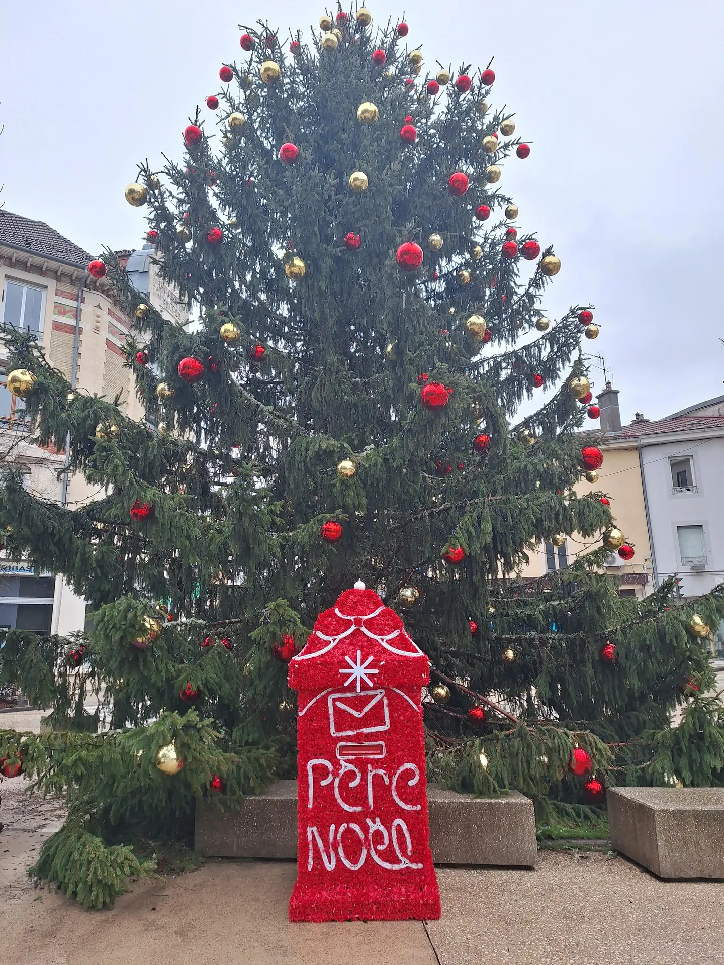Sous les branches scintillantes du grand sapin, la célèbre boîte rouge du Père Noël attend avec impatience les lettres des enfants sages.