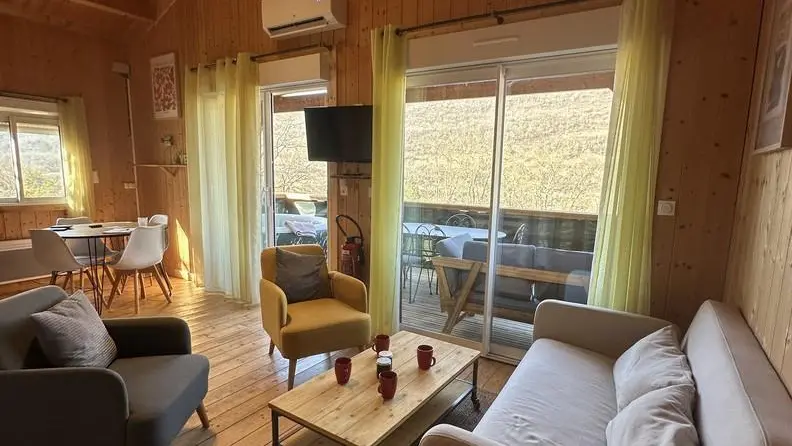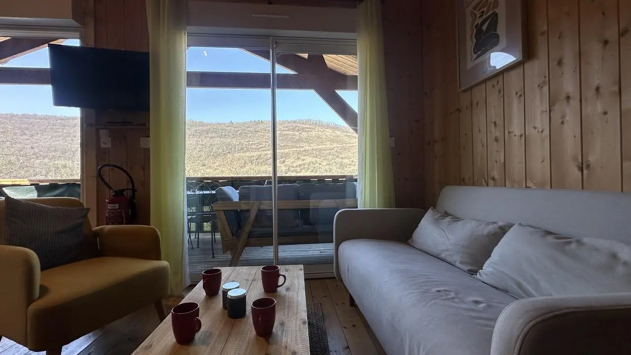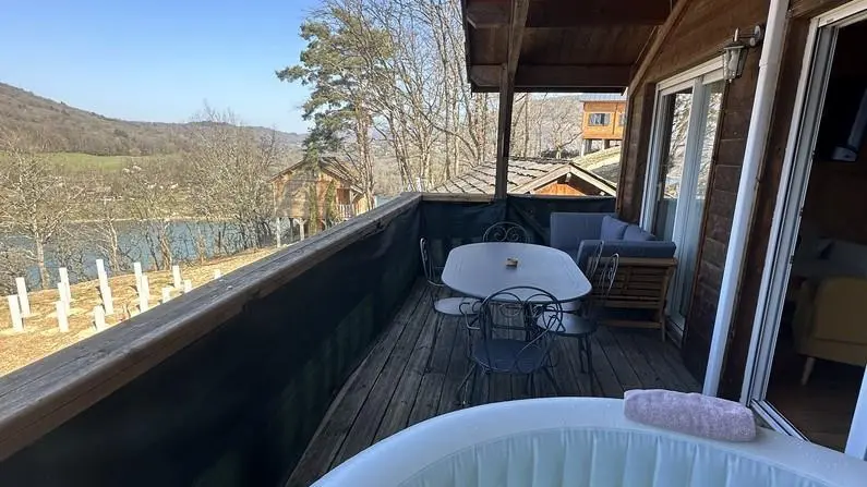 Offrez-vous une parenthèse hors du temps au lodge “La Cormière” avec une terrasse panoramique de 15 m² avec vue sur les méandre de la Vallée de l'Ain.