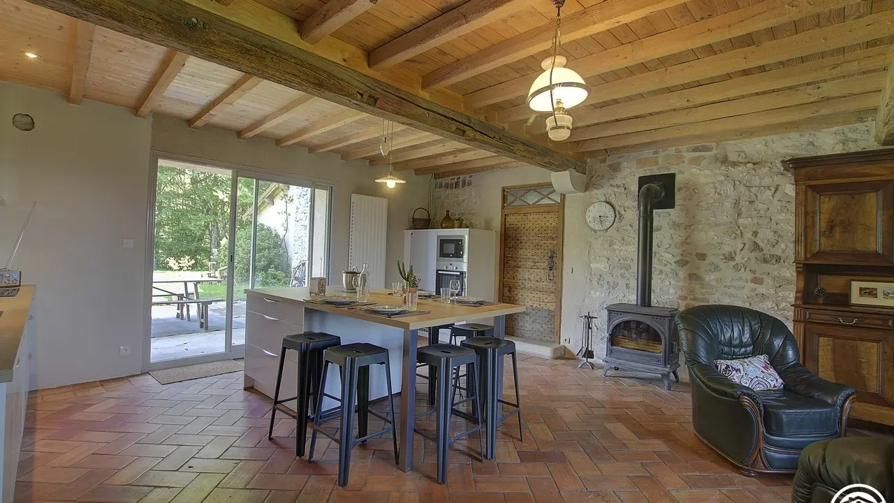 Sur l'extrémité de Meillonnas, cette ancienne ferme a été rénovée pour proposer un gîte de qualité (140 m²) sur deux niveaux avec 4 chambres. Par la cour commune avec les propriétaires, l'entrée indépendante et principale du gîte se fait sur une grand séjour ouvert, avec tommettes au sol et poutres à la française, sur une cuisine équipée et moderne, avec son espace salon. A l'étage supérieur, vous aurez le choix parmi les 4 chambres lumineuses et épurées. Deux chambres avec chacune deux lits simples en 90/190 et deux chambres avec chacune un lit double en 160/200. Une grande salle de bain blanche (7m²) avec lavabo rétro et WC intégré. Depuis la cuisine, vous accédez sur une grande terrasse privative orientée plein Est de 52 m² avec jardin commun. Chauffage fioul et bois (la première malle gratuite et 10 € la suivante). Le plus de ce gîte : les lits sont faits à l'arrivée et charges comprises. espace vert et bois. A découvrir : la manufacture et faïences de Meillonnas, Treffort le village médiéval perché , la vallée du Suran, la voie romaine et le Monastère Royal de Brou.