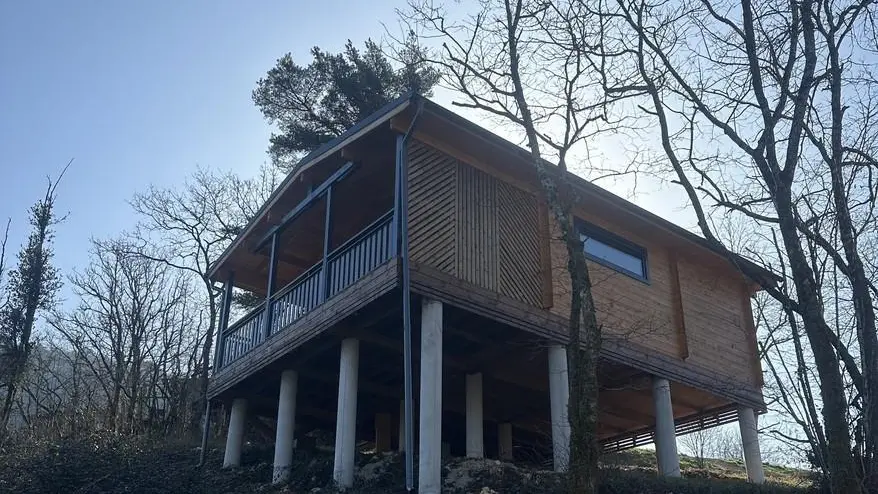 Venez découvrir la région avec vos animaux. Ils sont les bienvenus. La cabane "Le Chamois" fait partie d'un site nature d'exception comprenant 17 cabanes et lodges, parfaitement intégrés dans l'environnement, nichés sur les hauteurs de Serrières-sur-Ain, en surplomb de la rivière d'Ain.