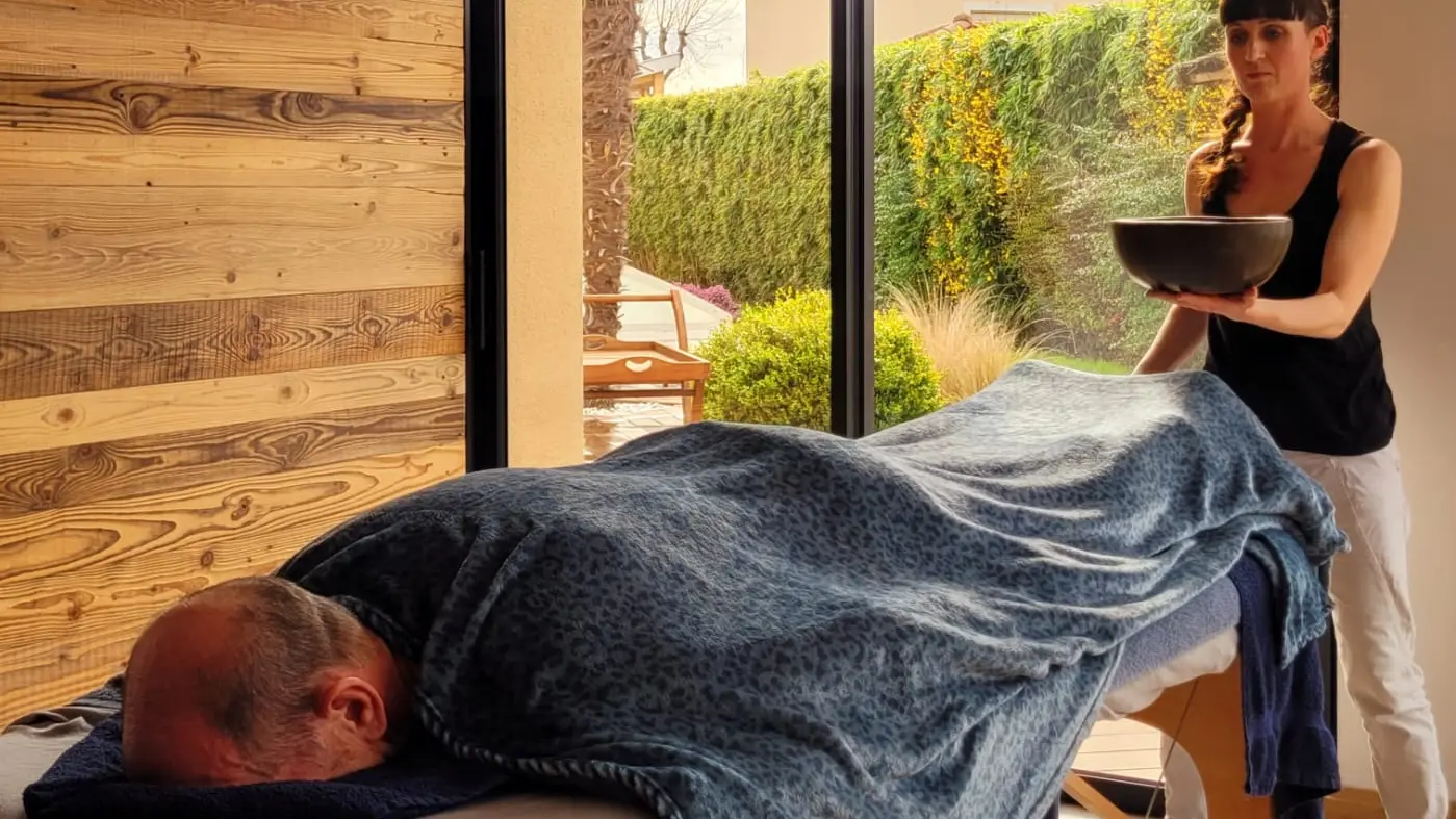 Massage Sérénité, alliant alternance subtile de massage corporel à l’huile végétale et massage sonore ; véritable expérience sensorielle permettant une vraie détente du corps et de l’esprit. Accessible à partir de 10 ans.